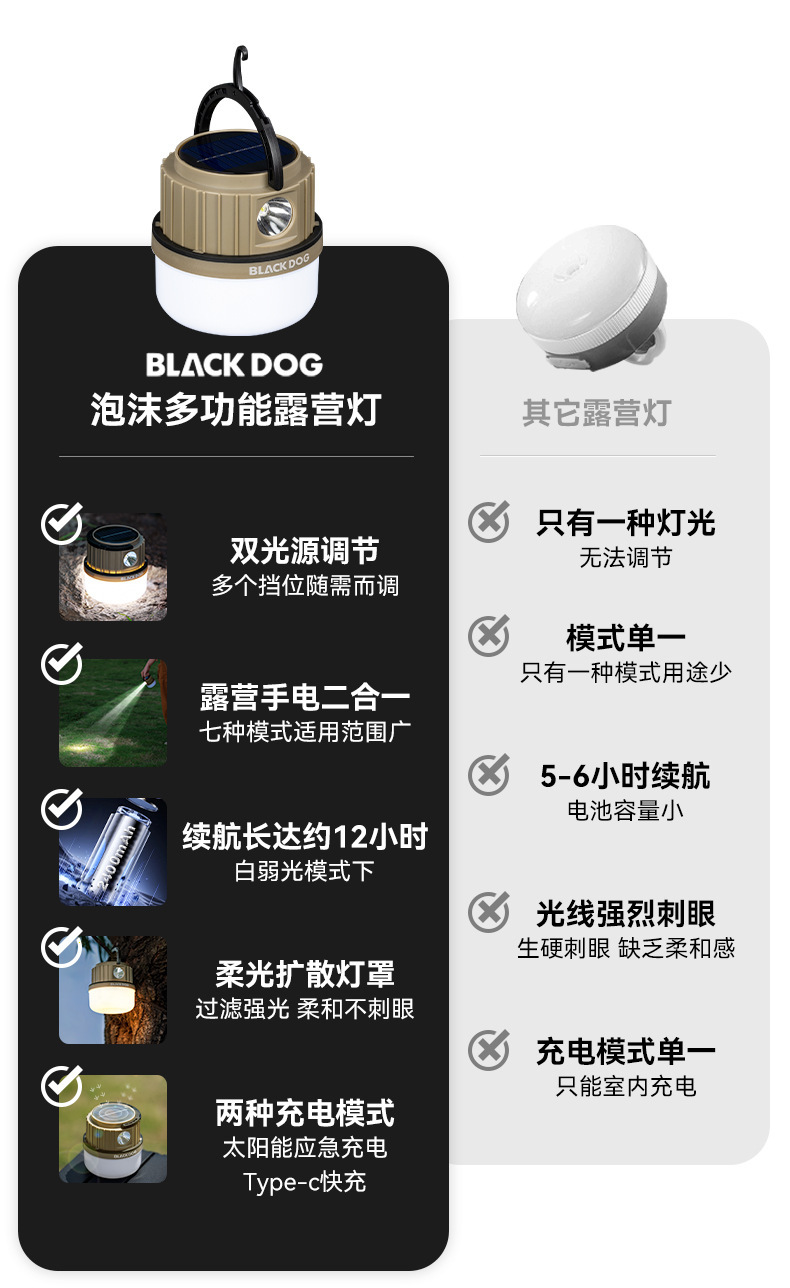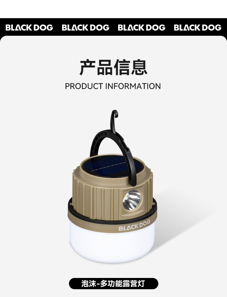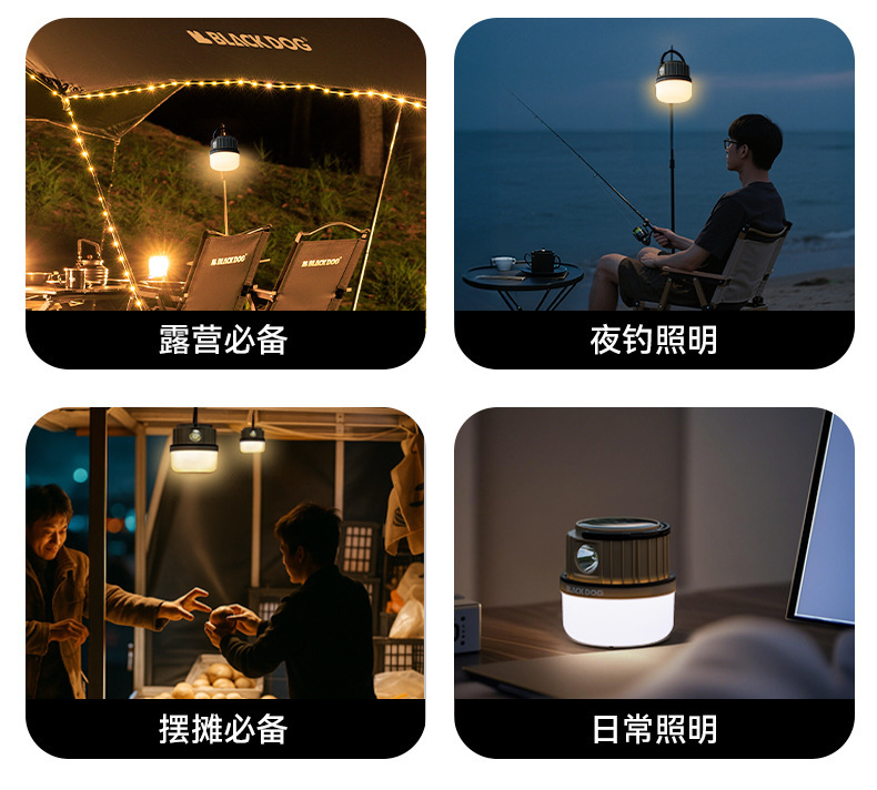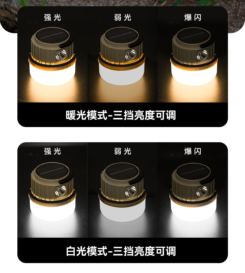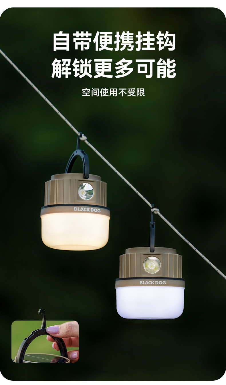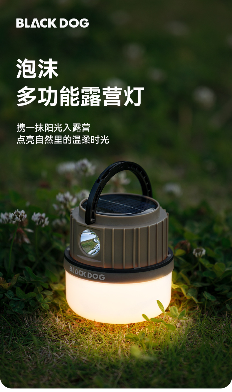 Blackdog黑狗戶外太陽能多功能露營燈超長續航照明野營氛圍掛式提