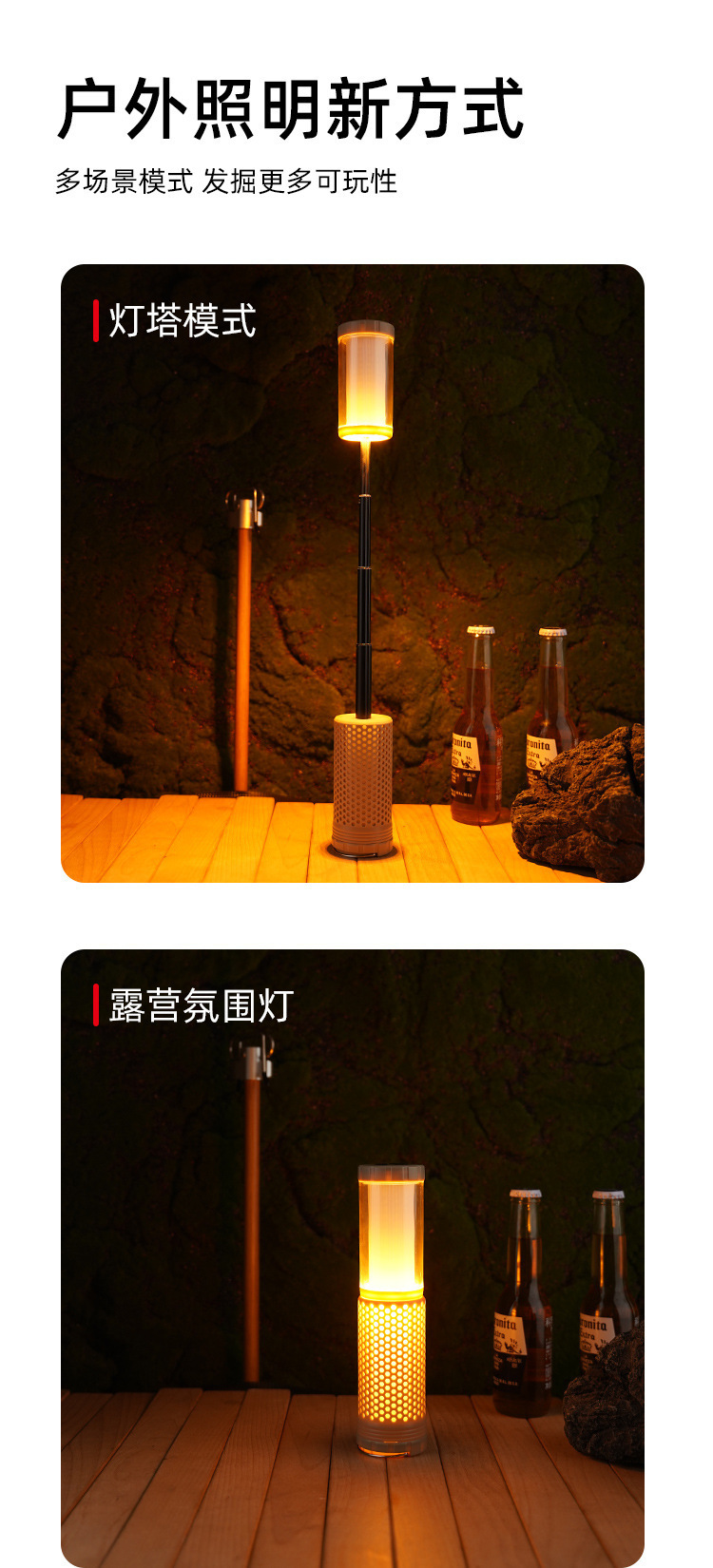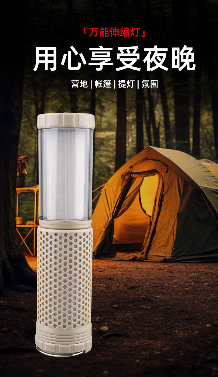 戶外照明營地充電伸縮露營燈雙色氛圍磁吸led工作燈手提帳篷燈