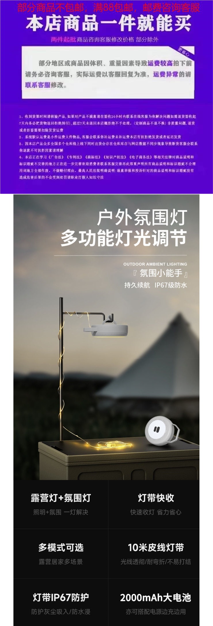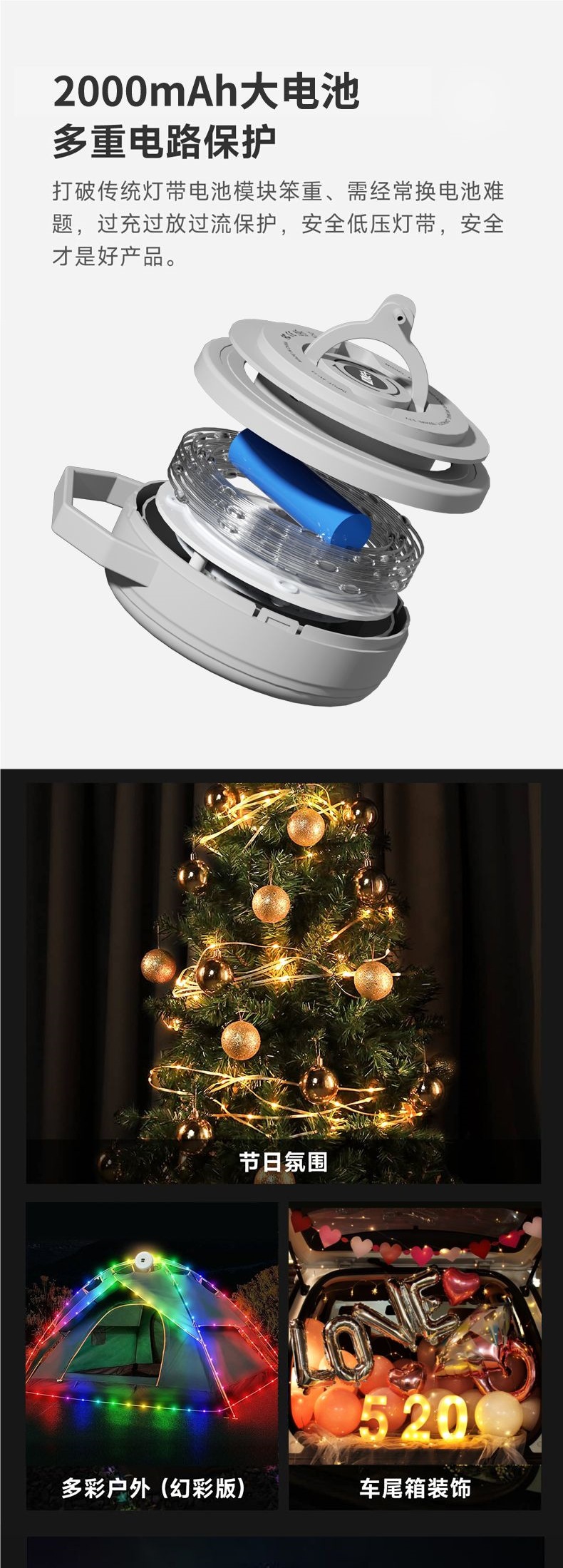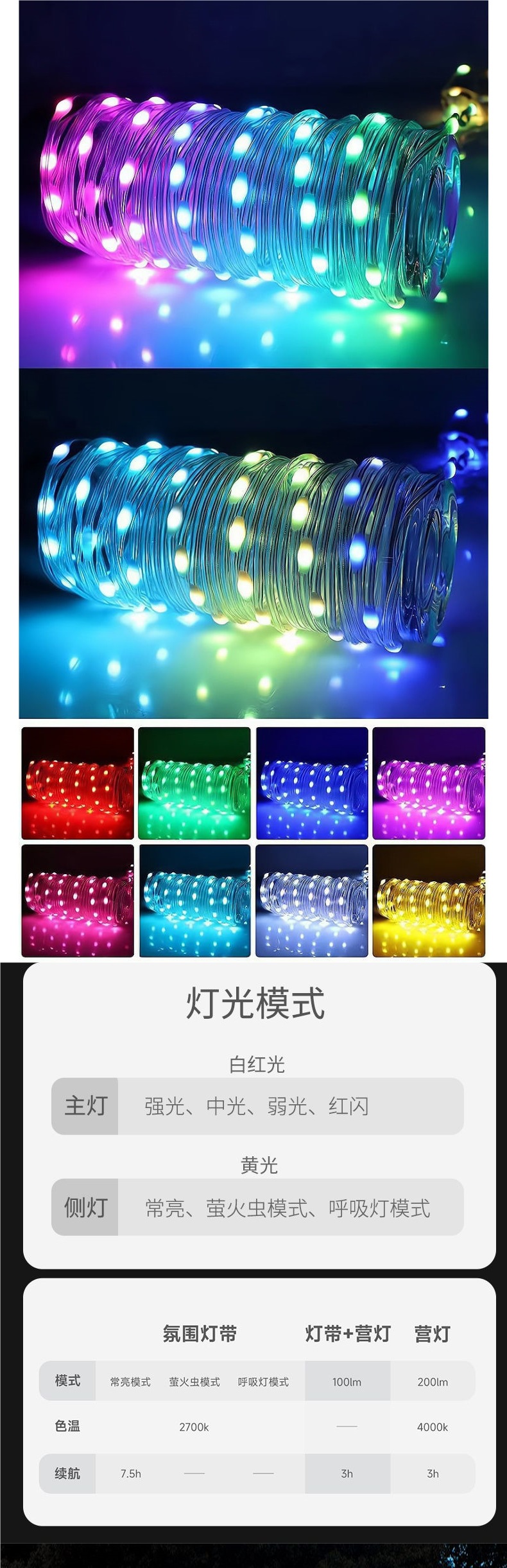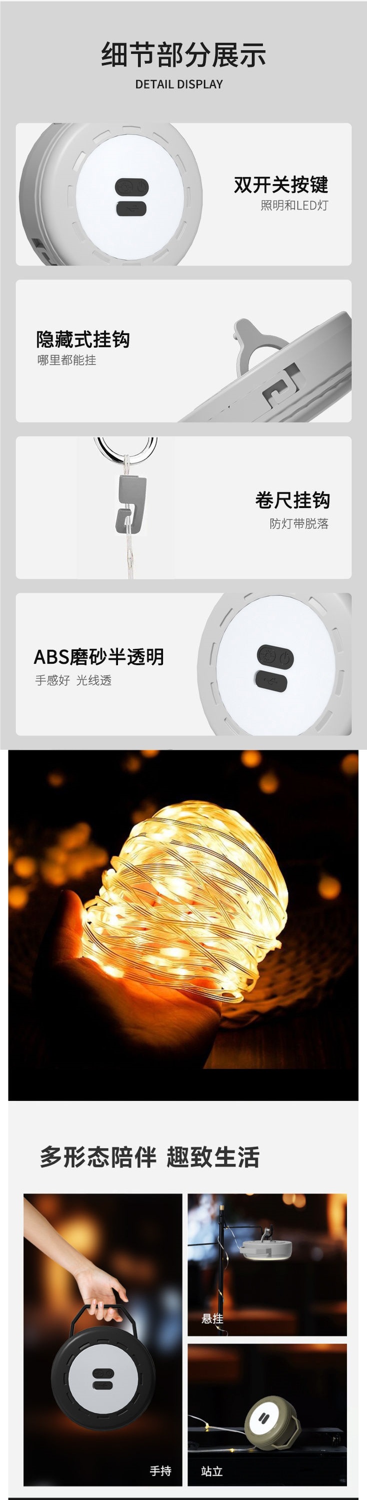 戶外卷尺露營燈氛圍燈串天幕led燈帶條超長續航露營燈帶戶外野營