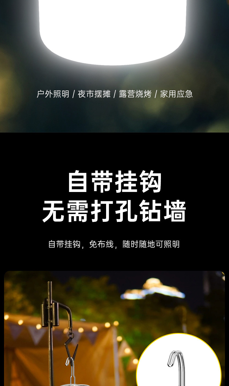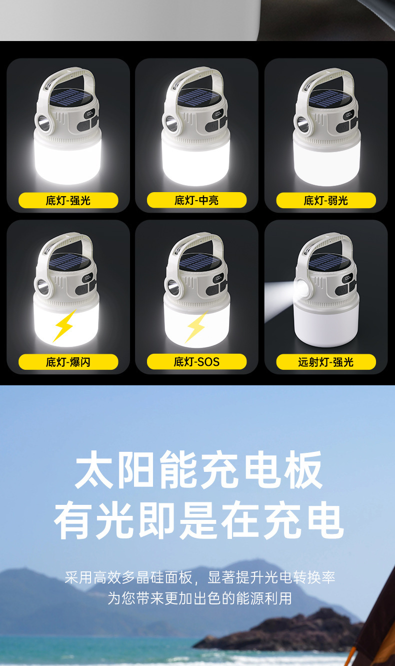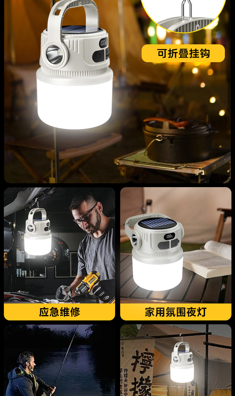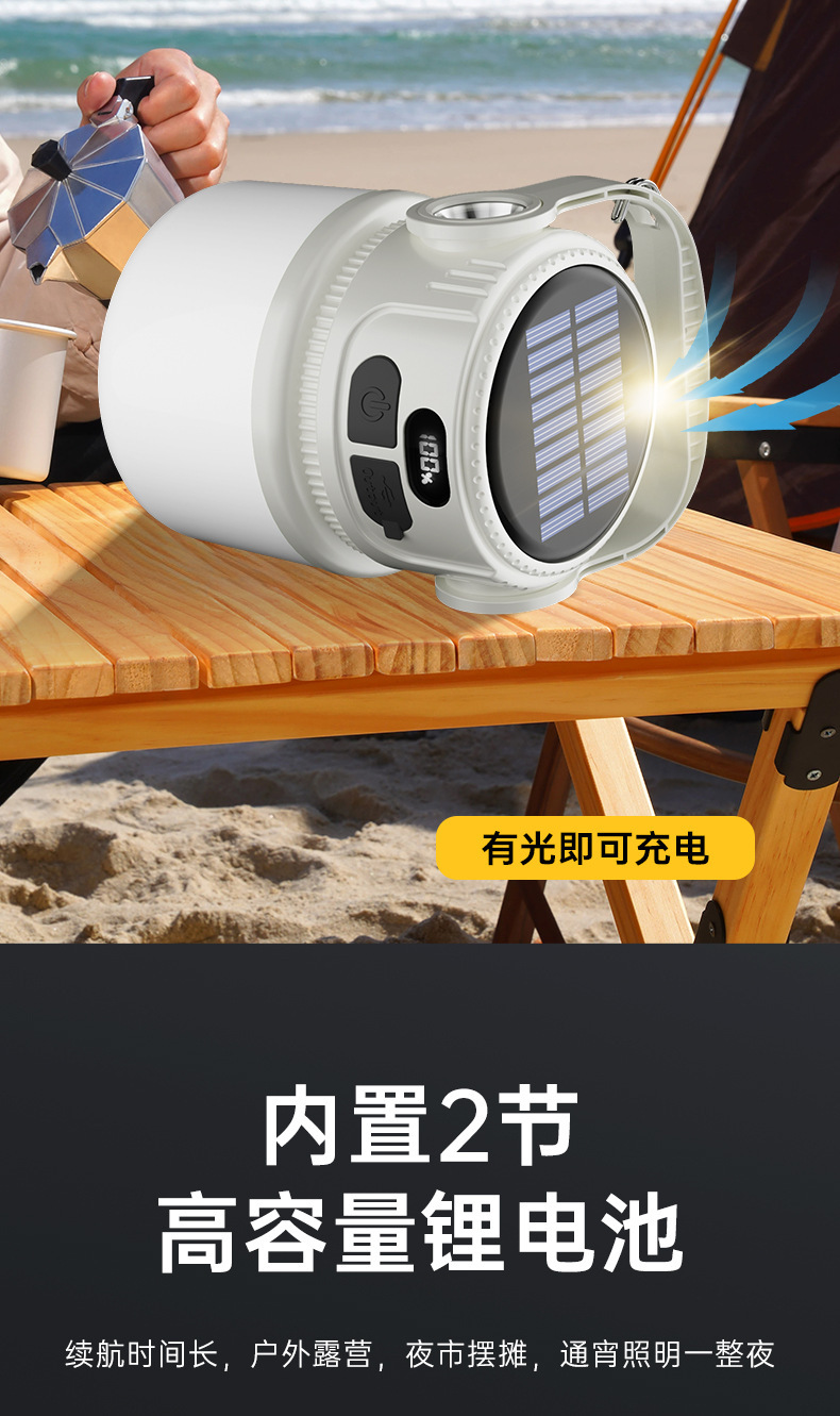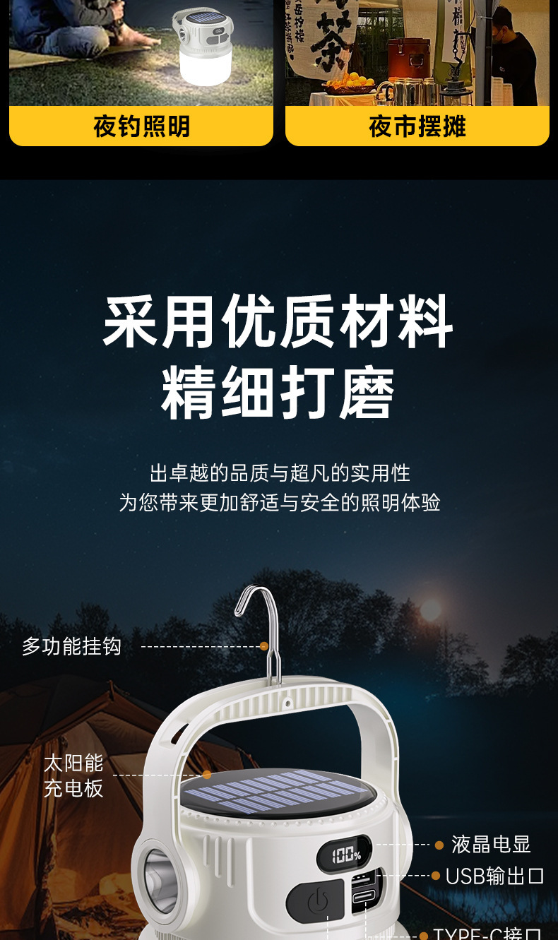 爆款露營燈太陽能多功能戶外移動照明燈USB充電地攤夜市遙控野營