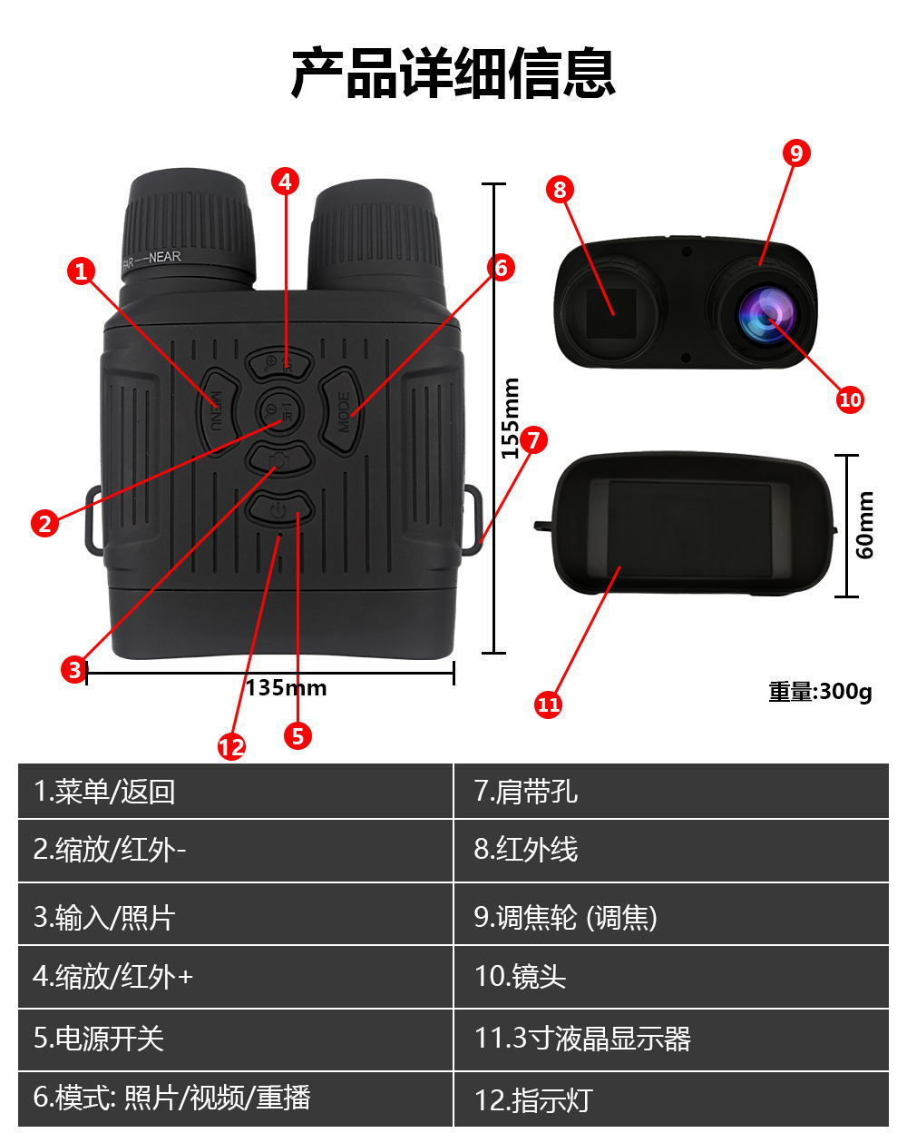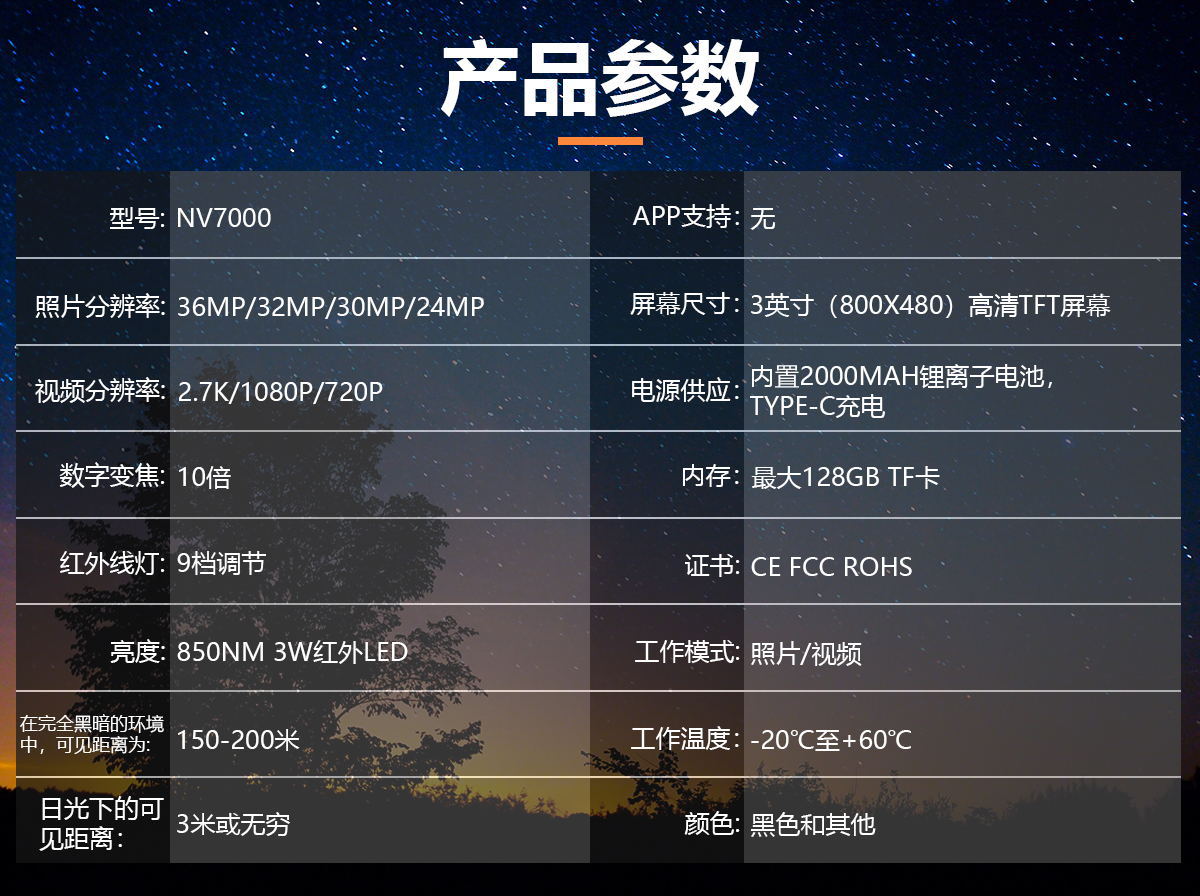 NV7000雙筒夜視儀2.7K影片戶外望遠鏡3英寸螢幕IR紅外