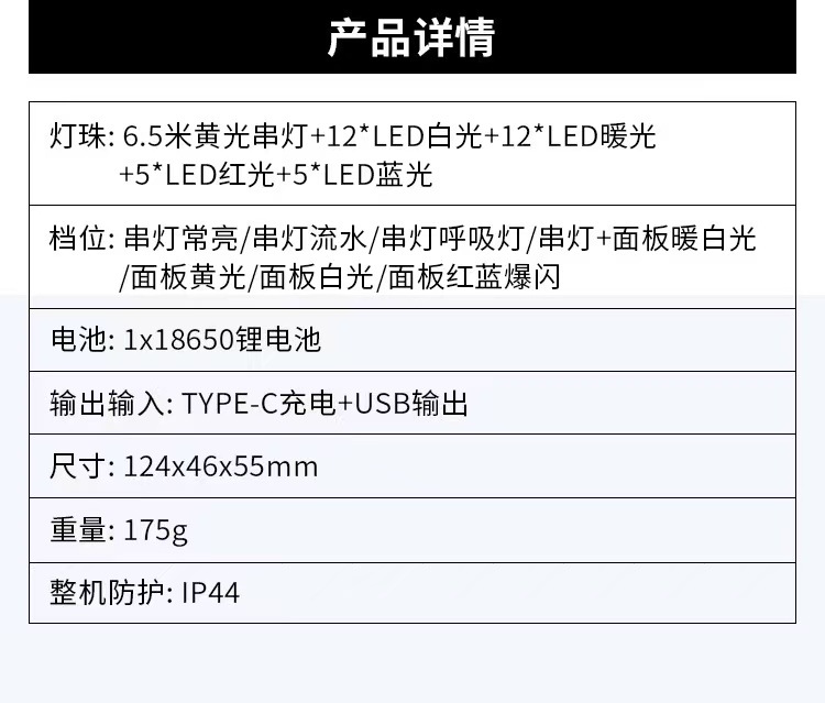 新款多功能露營燈戶外氛圍野營帳篷串燈庭院防水天幕燈長續航