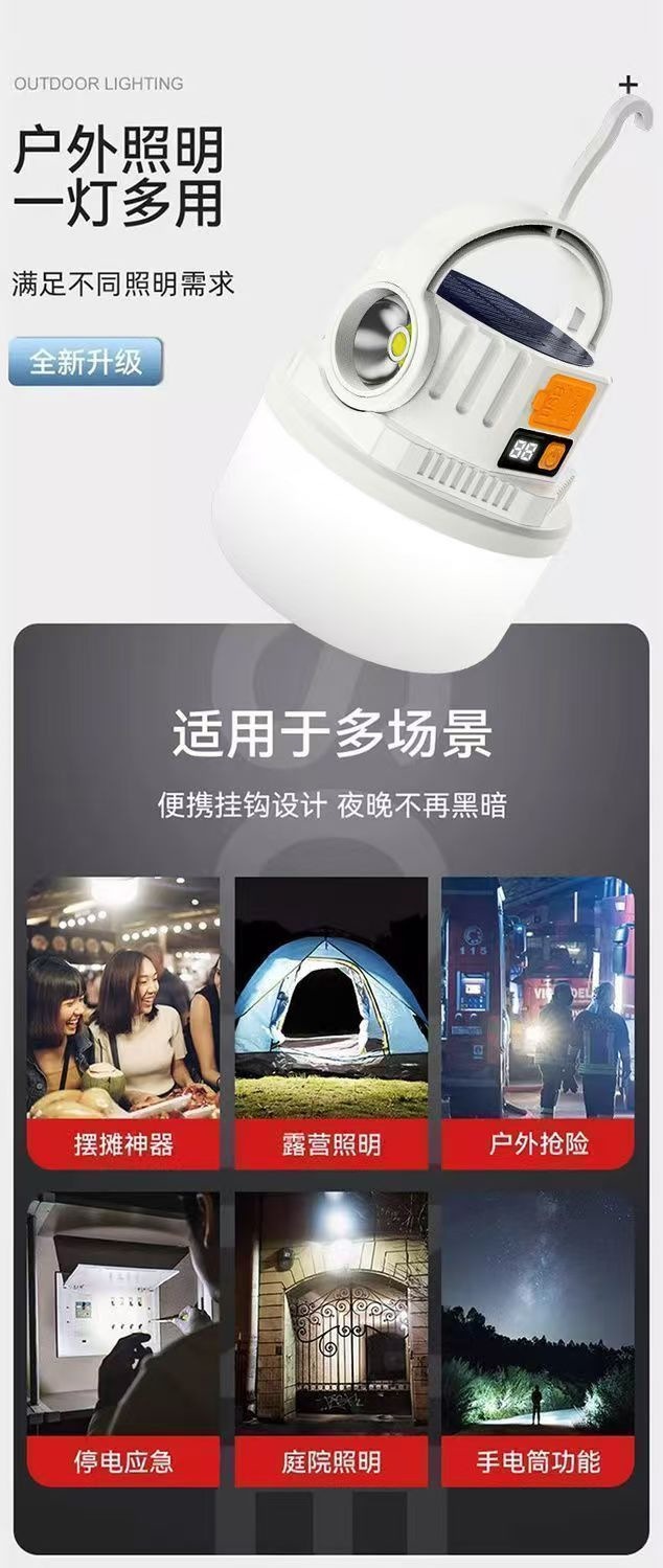 太陽能露營充電戶外超長續航帳篷家用應急燈野營充電式照明燈擺攤