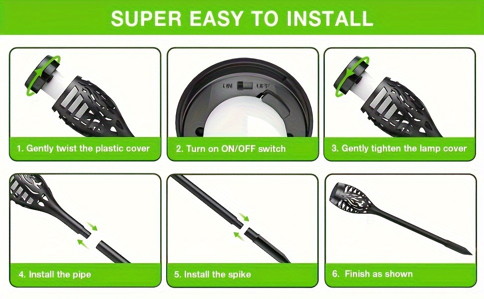 8/12PCS Solar Flickering Flame Torch Lights Outdoor Tiki