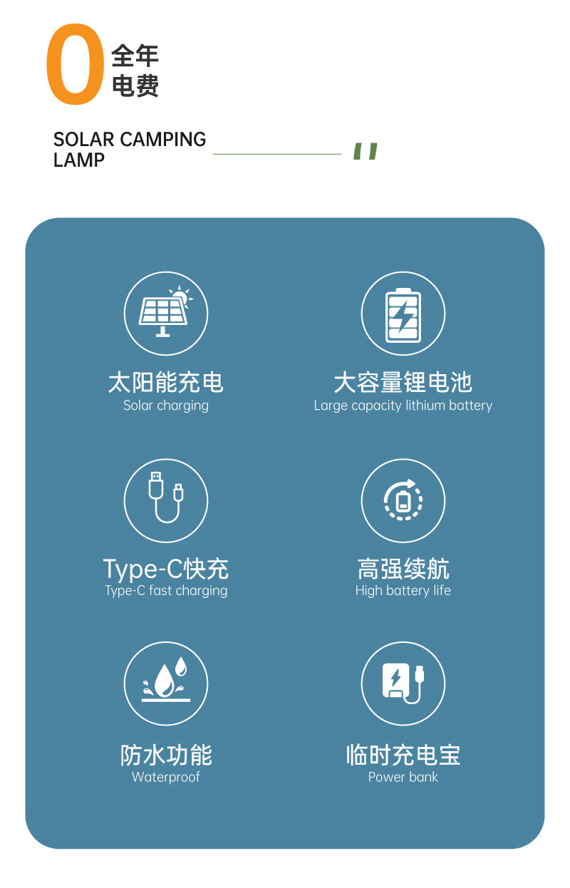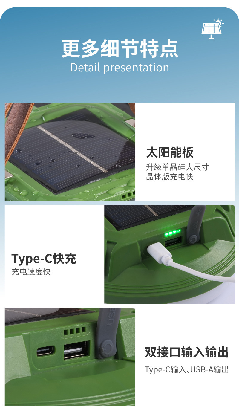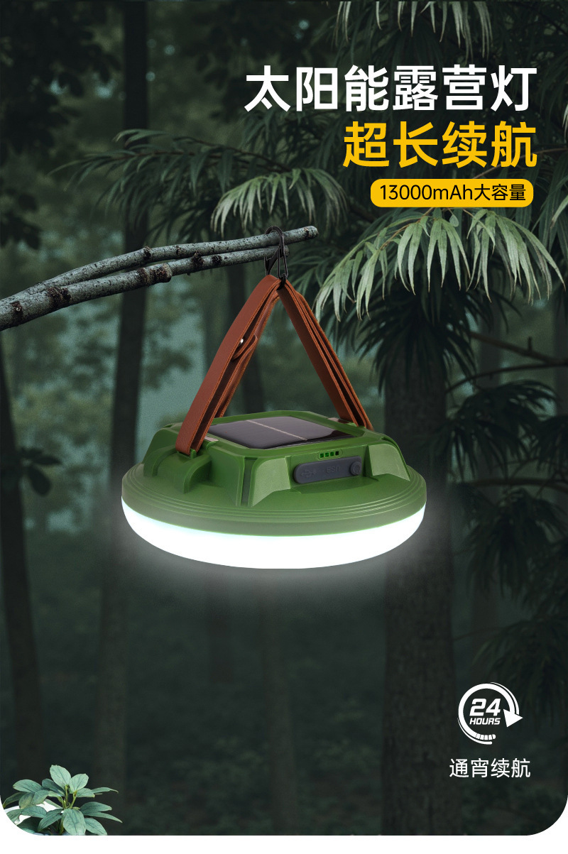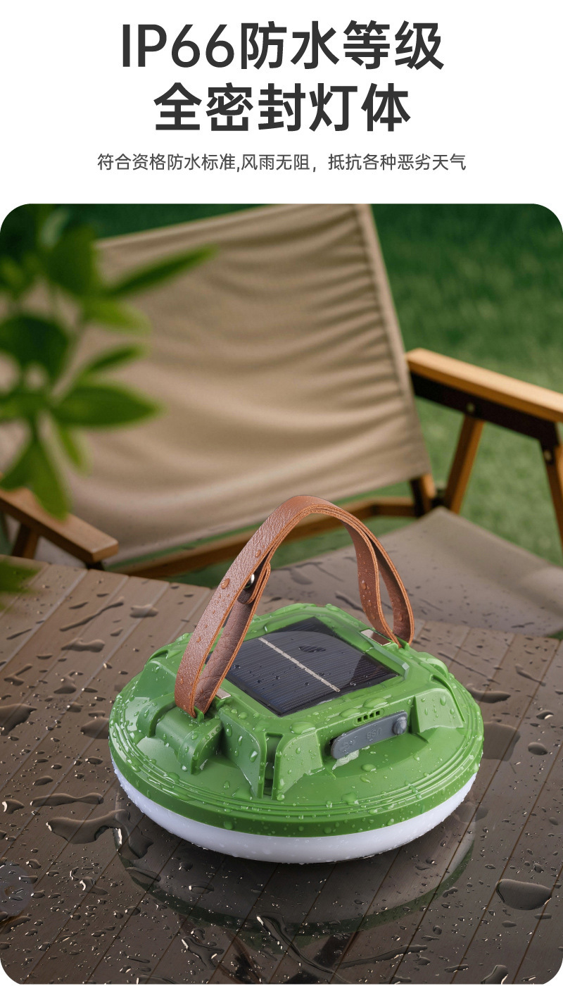 多功能太陽能手提燈掛繩野營燈防水太陽能飛碟燈LED露營燈