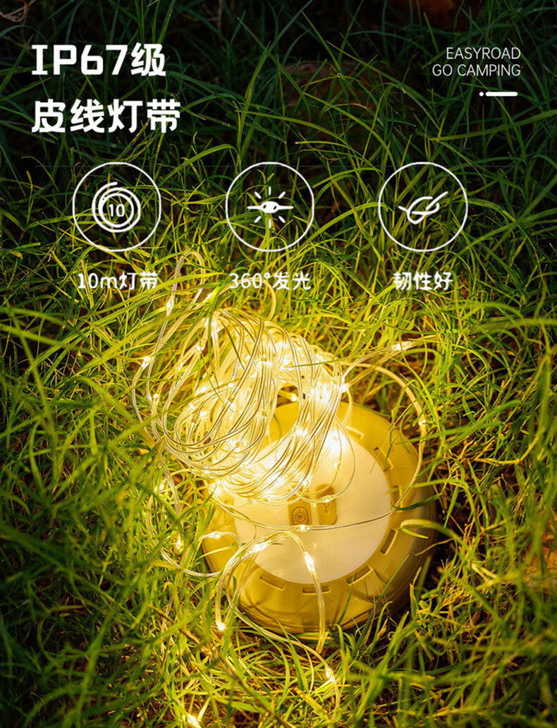 爆款露營燈led燈帶戶外帳篷營地氛圍天幕燈充電式高續航led卷