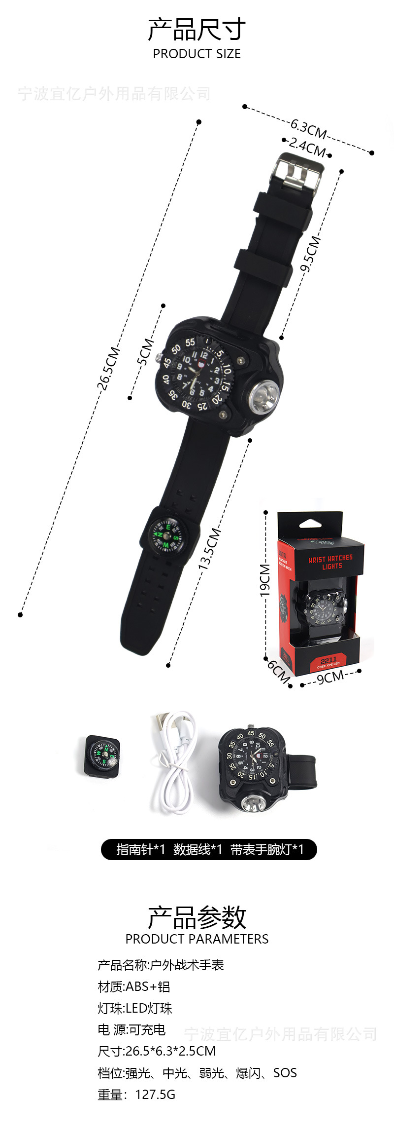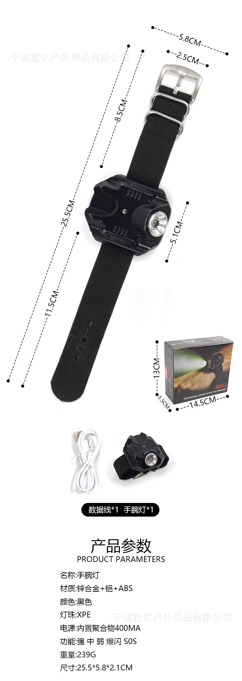 戶外戰術手腕燈超亮運動手錶燈可攜式多功能遠射燈露營野外釣魚裝備