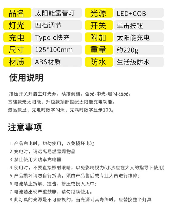 | 顔色 | +露營燈遙控款 雙鋰電帶太陽能充電 指示燈電顯 檔位強中弱前燈~ |