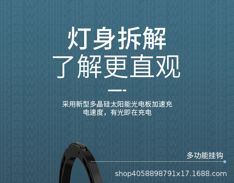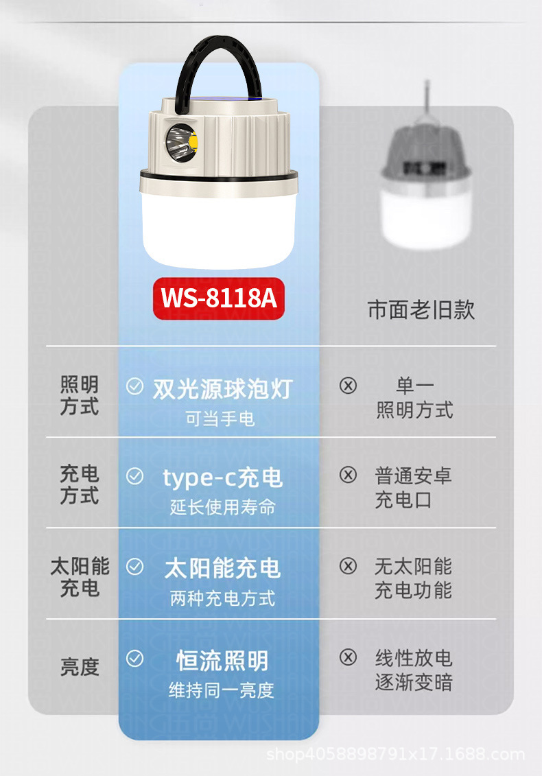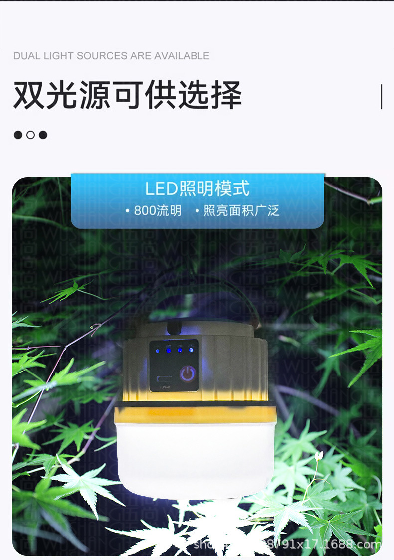 伍尚露營燈手提掛燈兩用戶外太陽能小燈泡照明掛式帳篷露營燈
