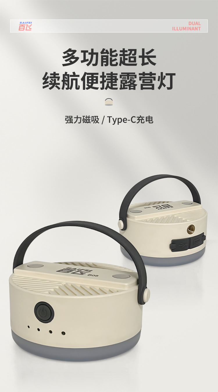 百飛露營燈帳篷燈戶外多功能照明燈超長續航充電磁吸野營燈可調光