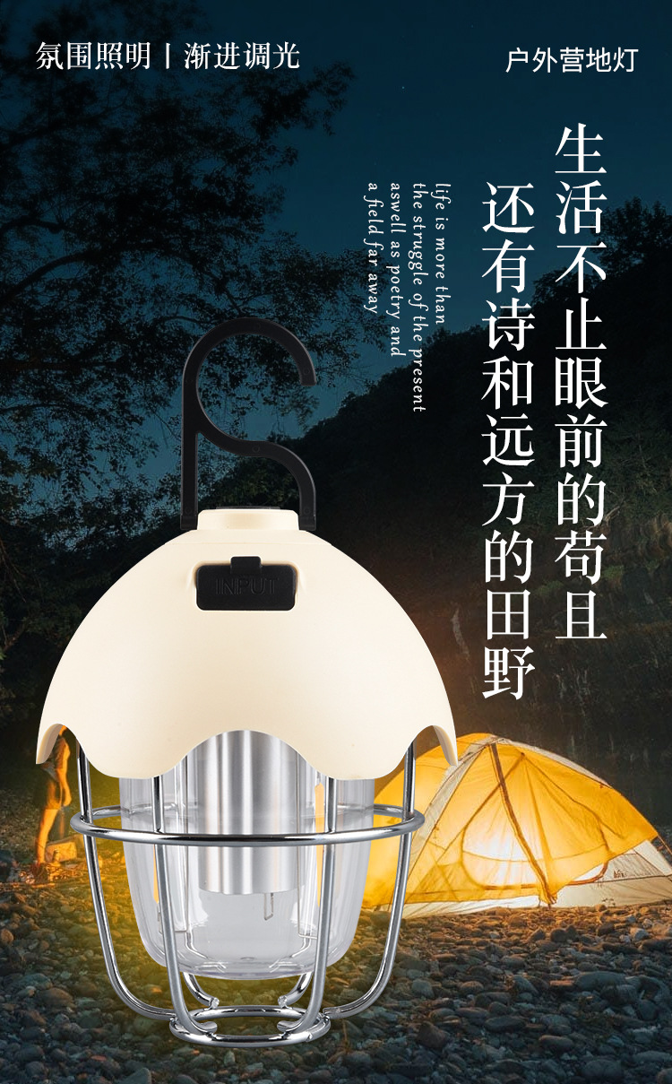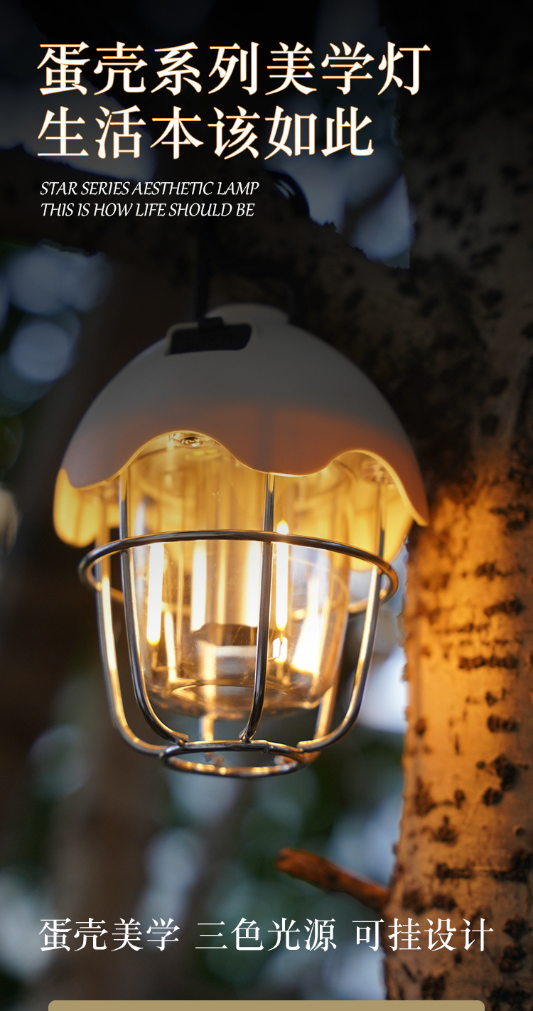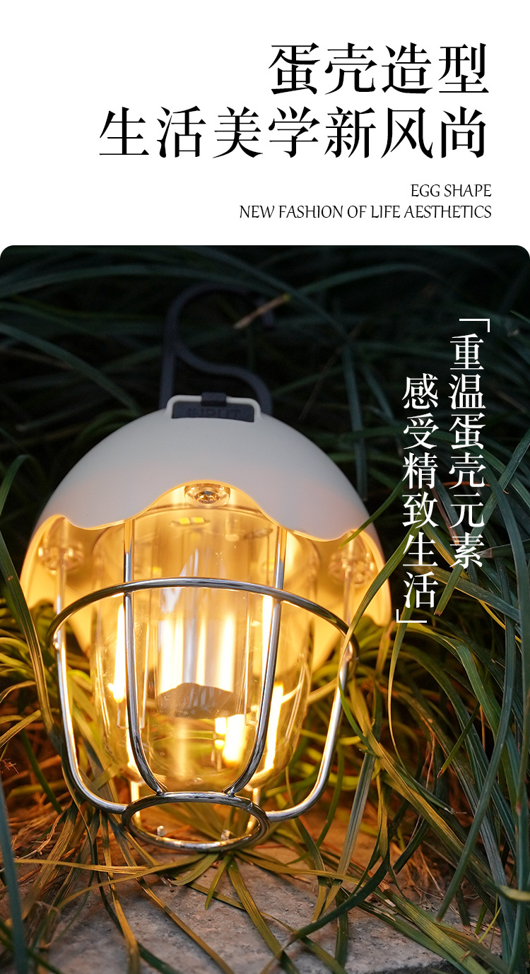 高顔值ins戶外露營氛圍燈蛋殼形帳篷氛圍燈三檔可調快充天幕燈