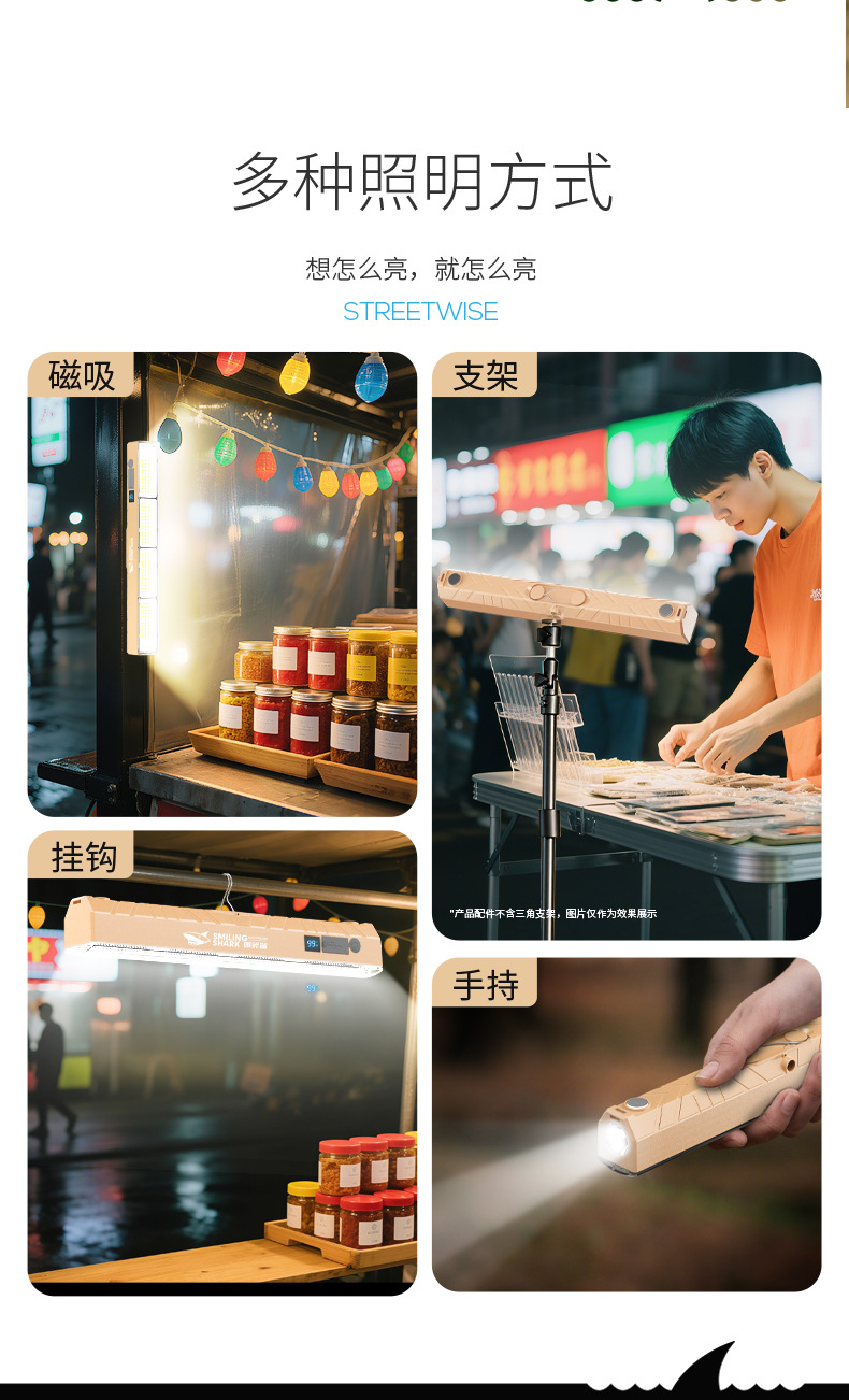 新款擺攤地攤夜市應急照明燈充電式戶外露營燈琯磁吸led燈超長續