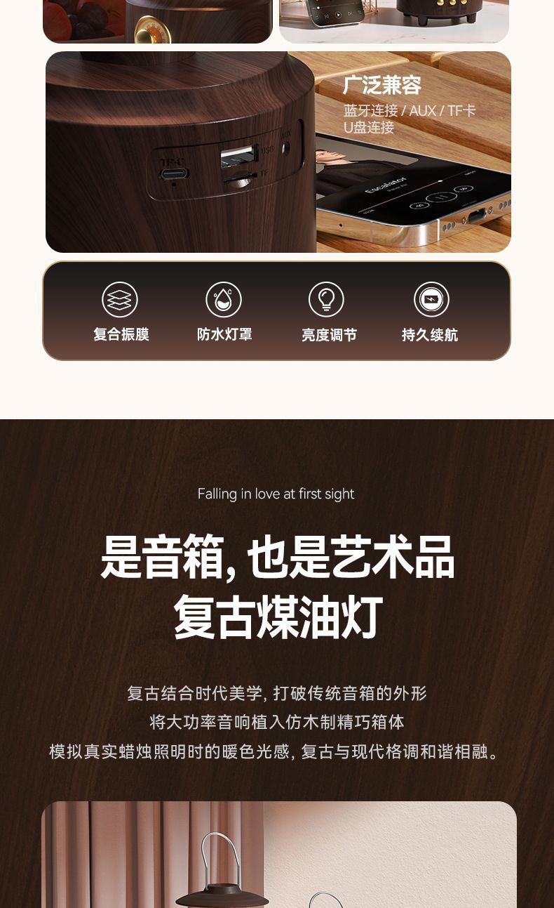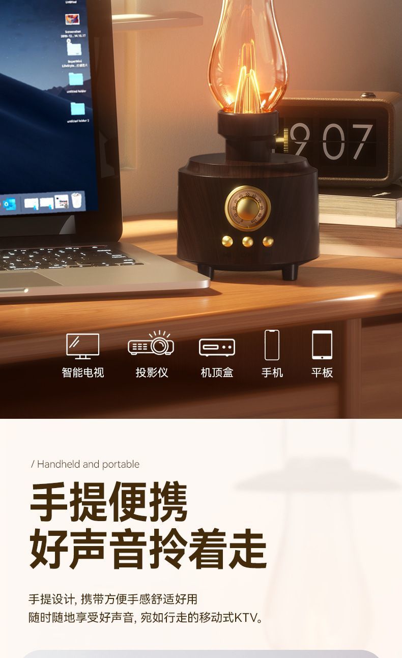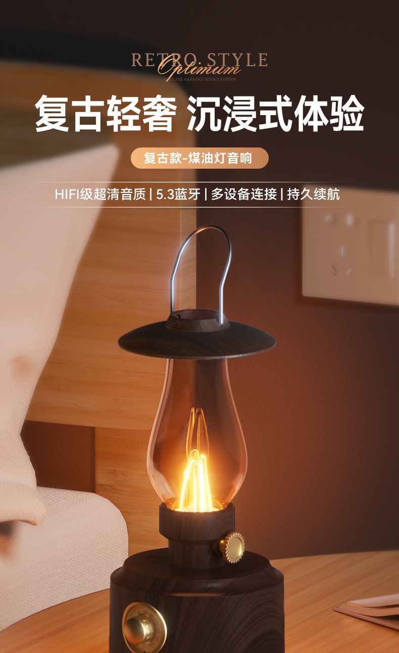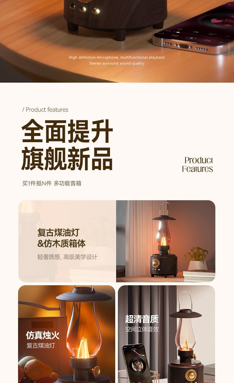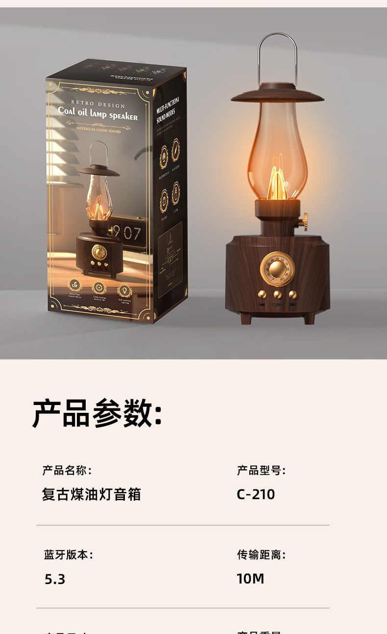 P5H【松石綠亮眼】煤油燈復古藍牙音響復古桌面音箱戶外可攜式露營