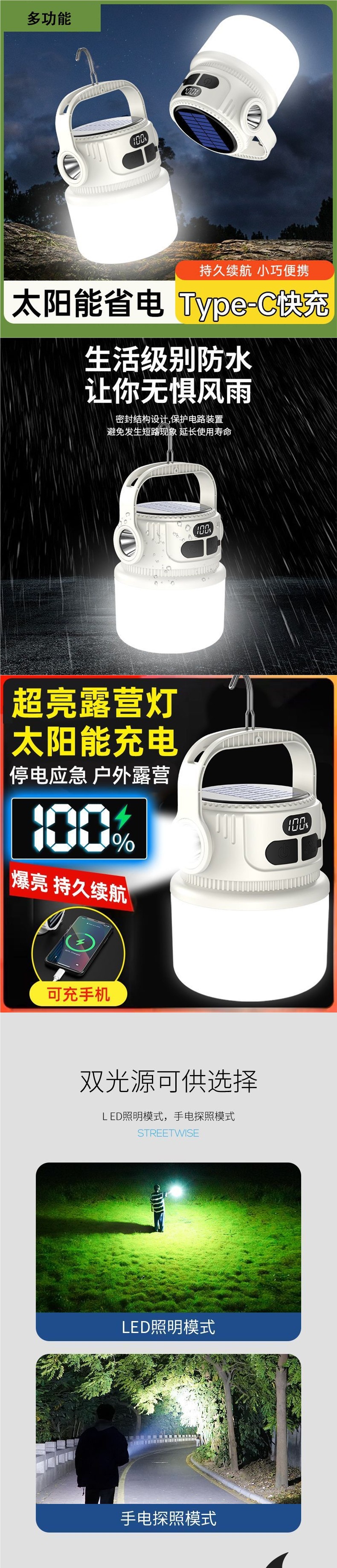 太陽能充電燈戶外露營停電應急家用照明帳篷營地LED手電筒