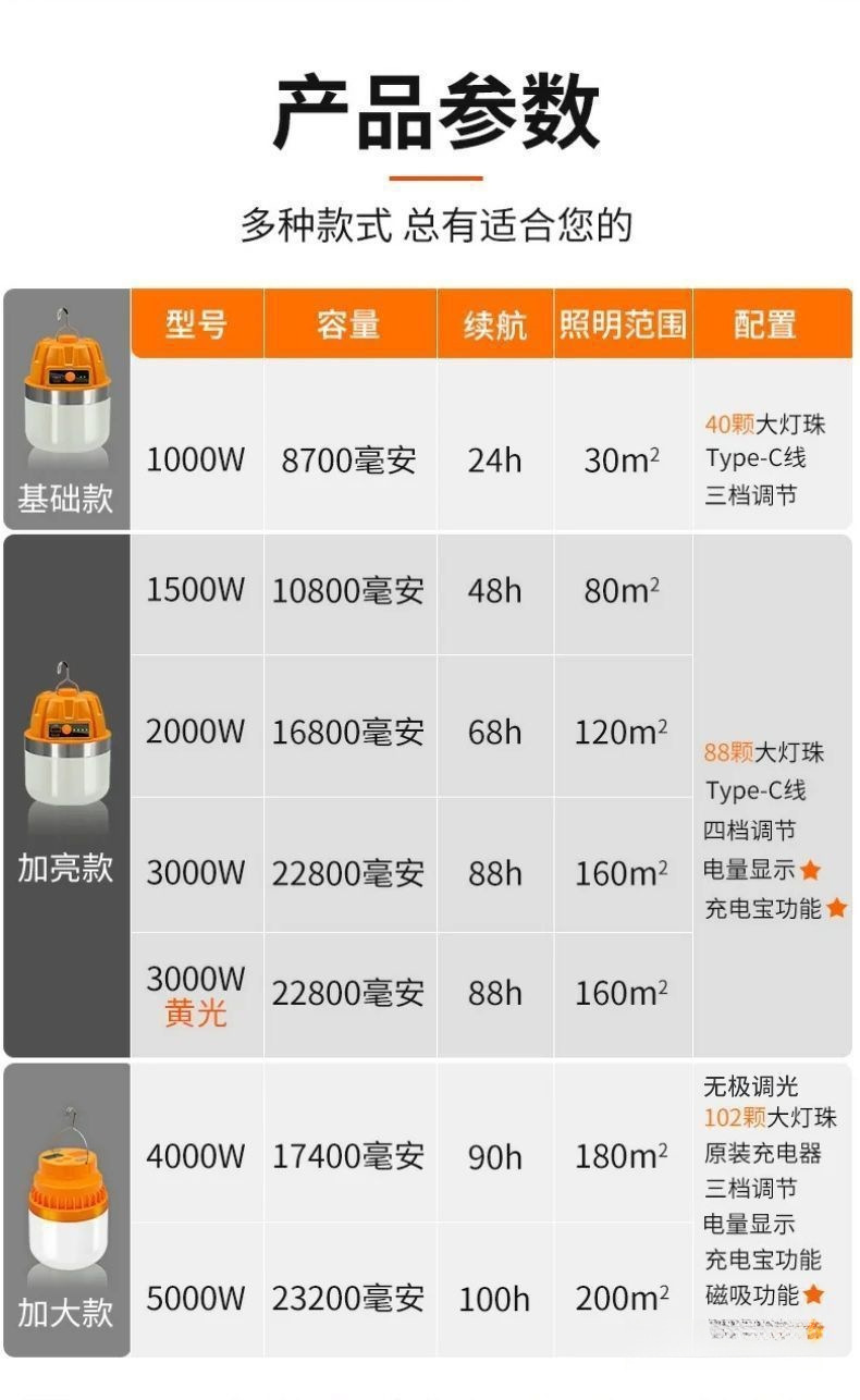 耐用燈泡夜市擺攤地攤燈無線移動式燈露營家用停電應急室外照明燈
