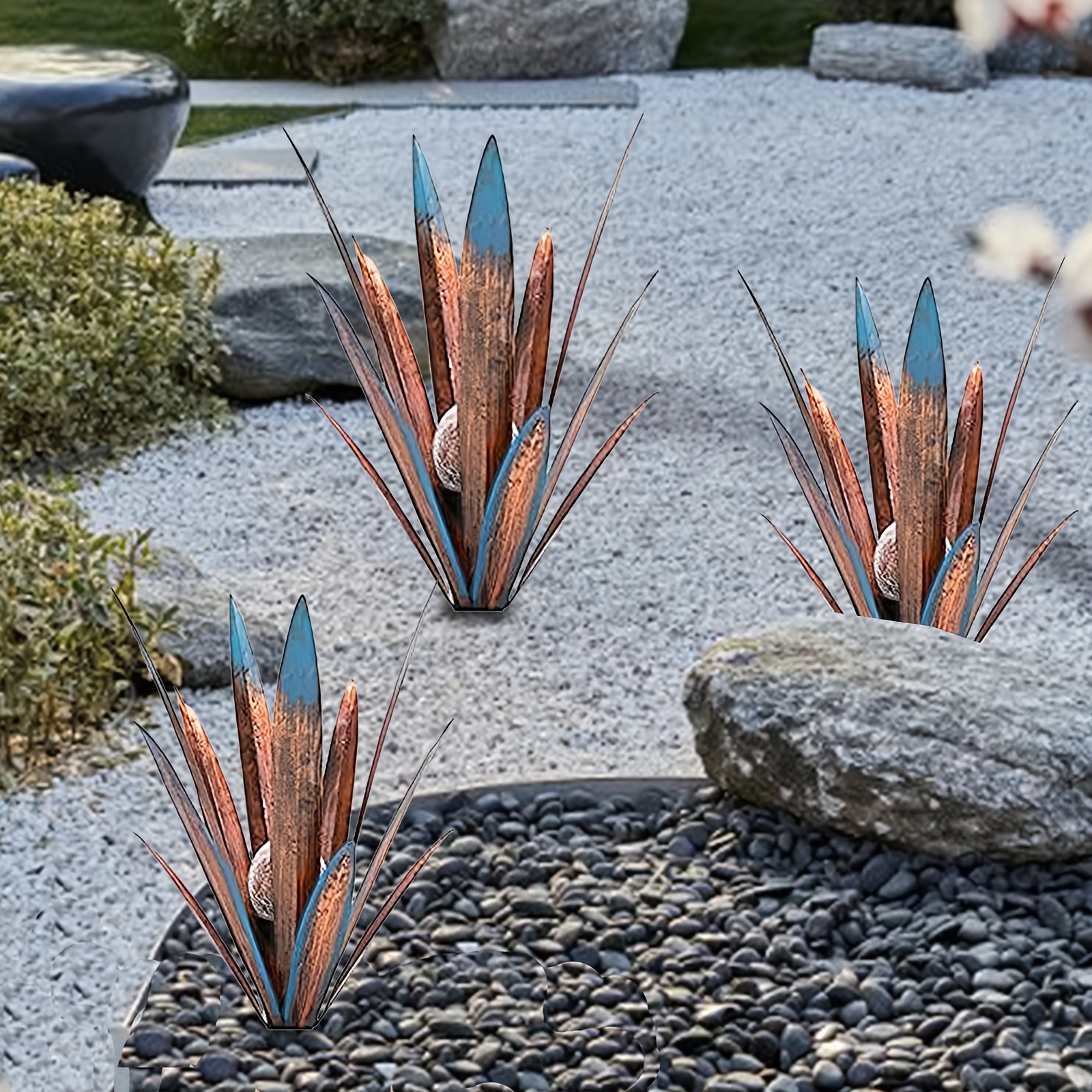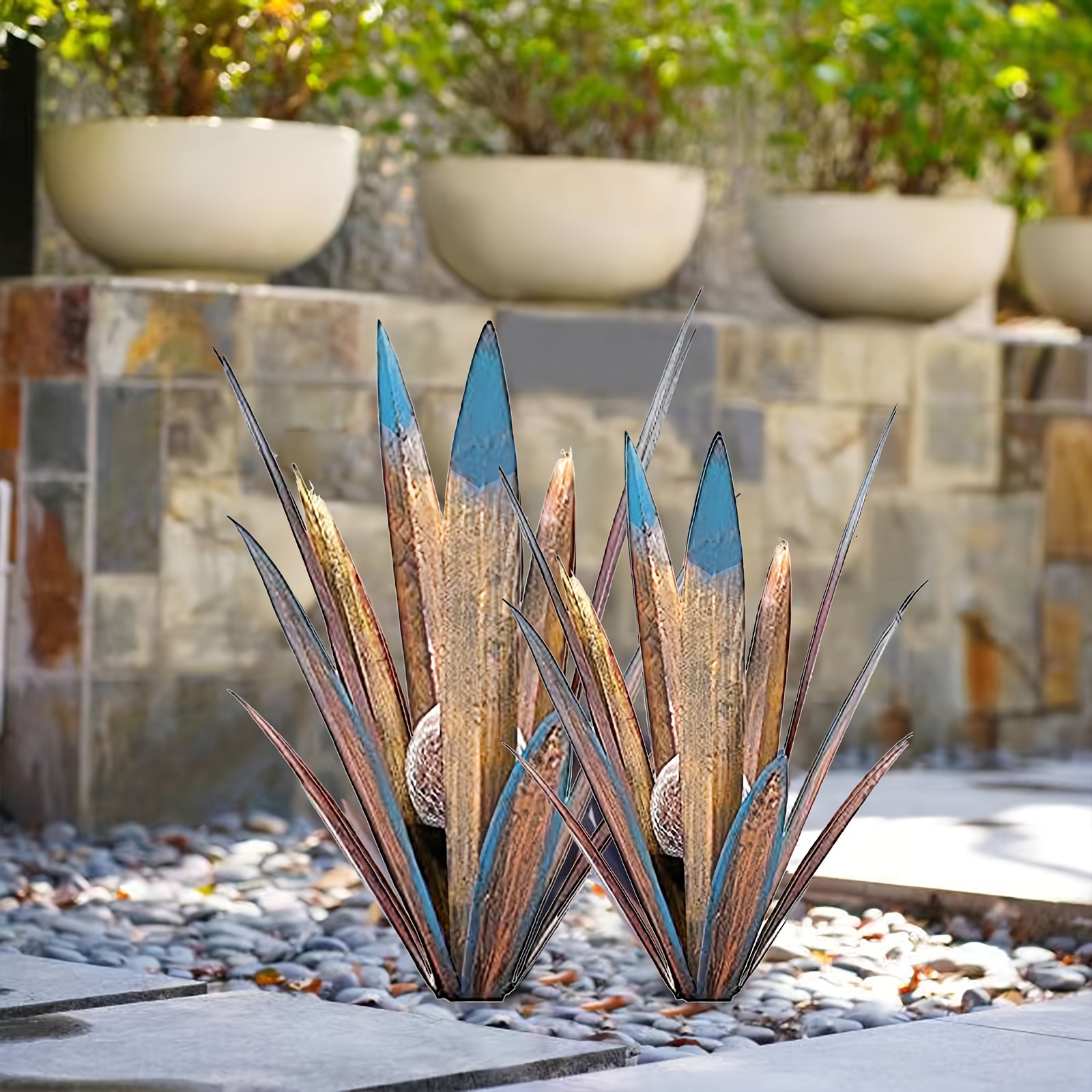 2PCS Metal Agave Solar Lawn Lights, Plant Home Decoration,