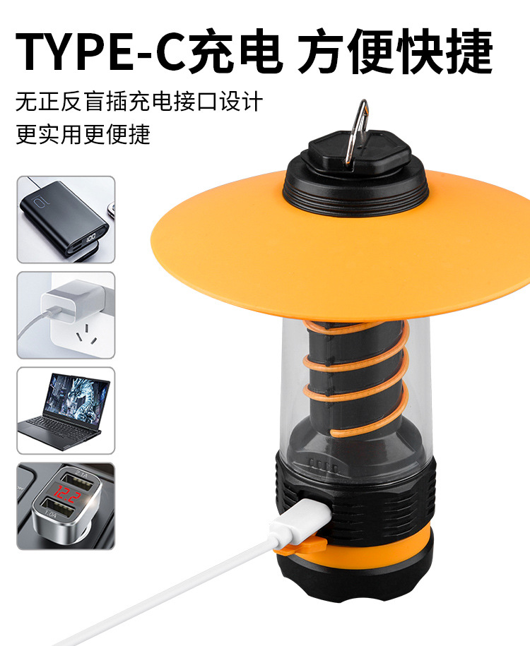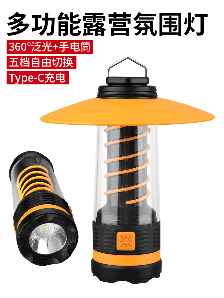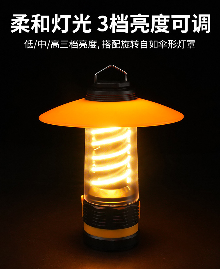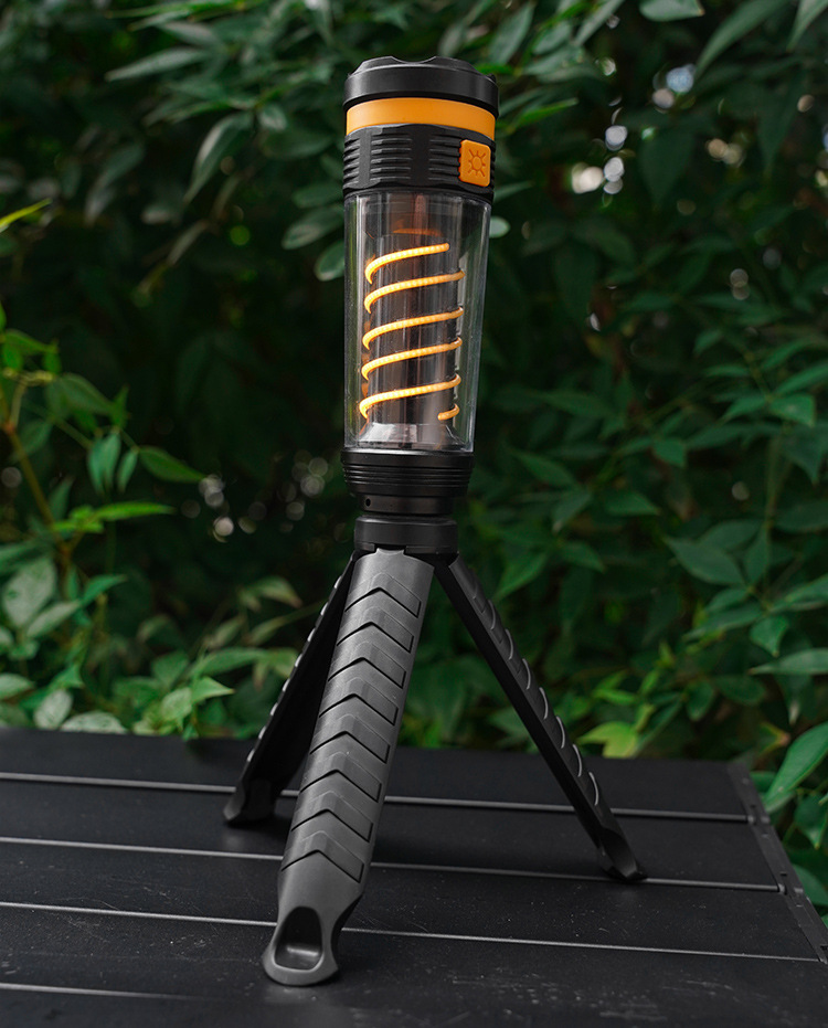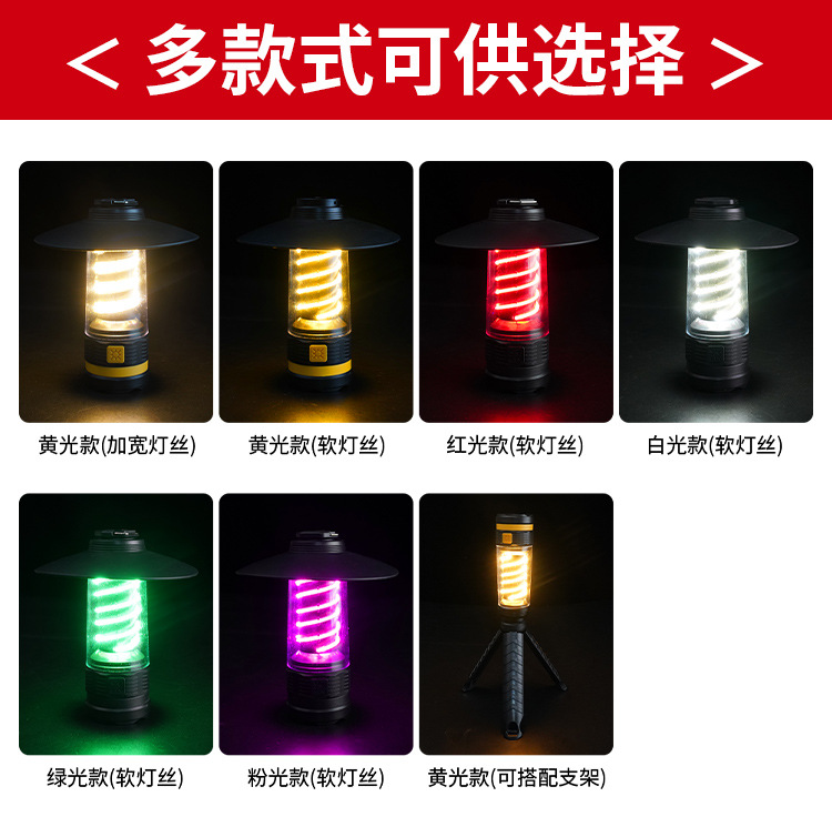 新款戶外露營燈戶外野營遠射照明燈高容量雙螺旋氛圍照射手電