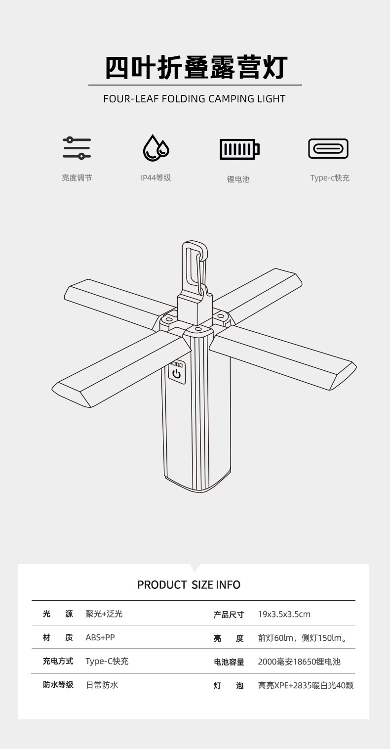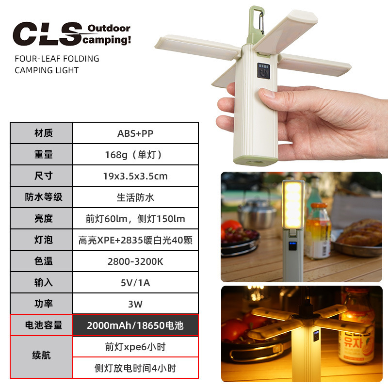 CLS戶外露營燈帳篷氛圍燈長續航四葉折疊天幕多功能LED手電營地燈
