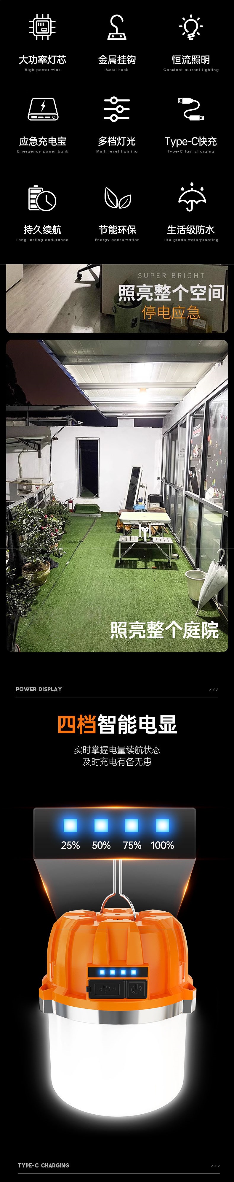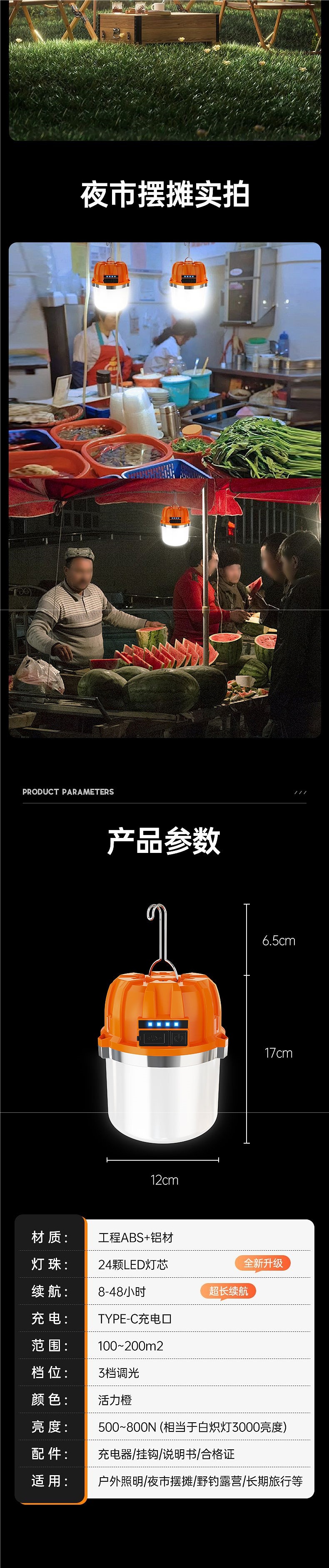LED充電燈泡超亮戶外夜市燈擺攤應急家用多功能照明營地帳篷