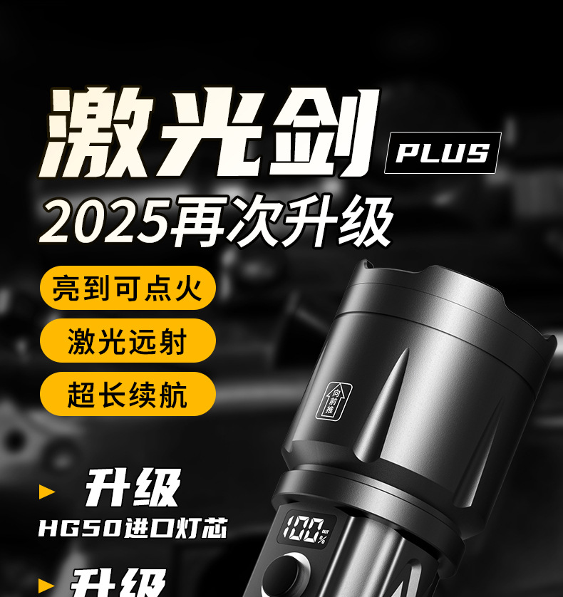 2025新款爆量手電筒強光充電超亮小型可攜式雷射戶外遠射超長續航