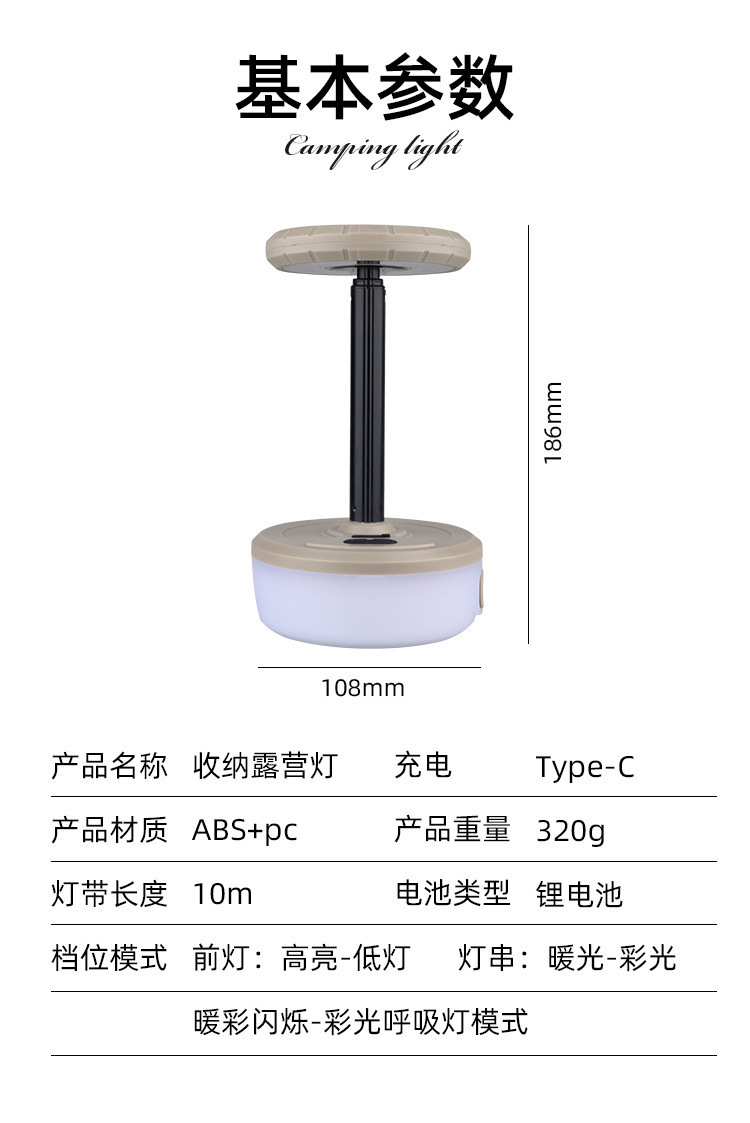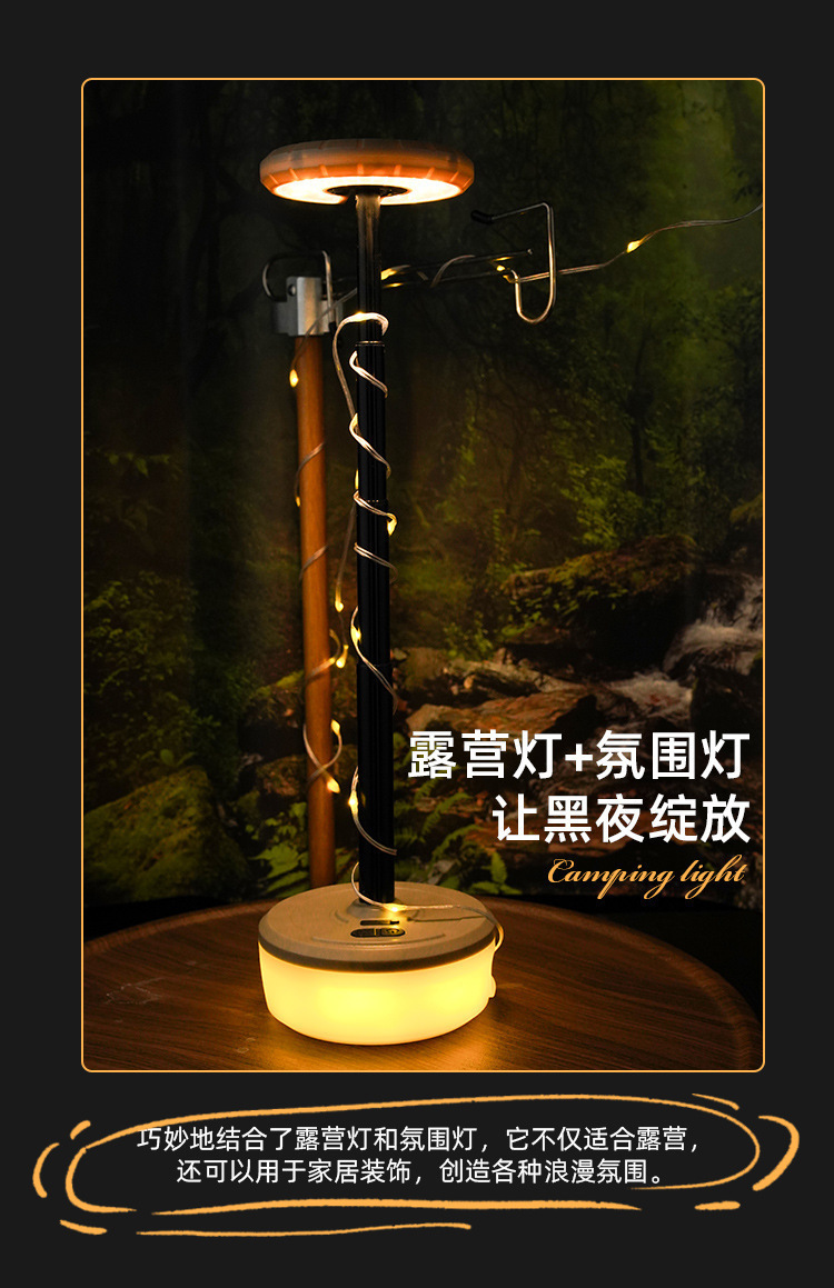 多功能露營燈落地旋轉營地燈 led燈可旋轉戶外氛圍線燈串防水彩燈