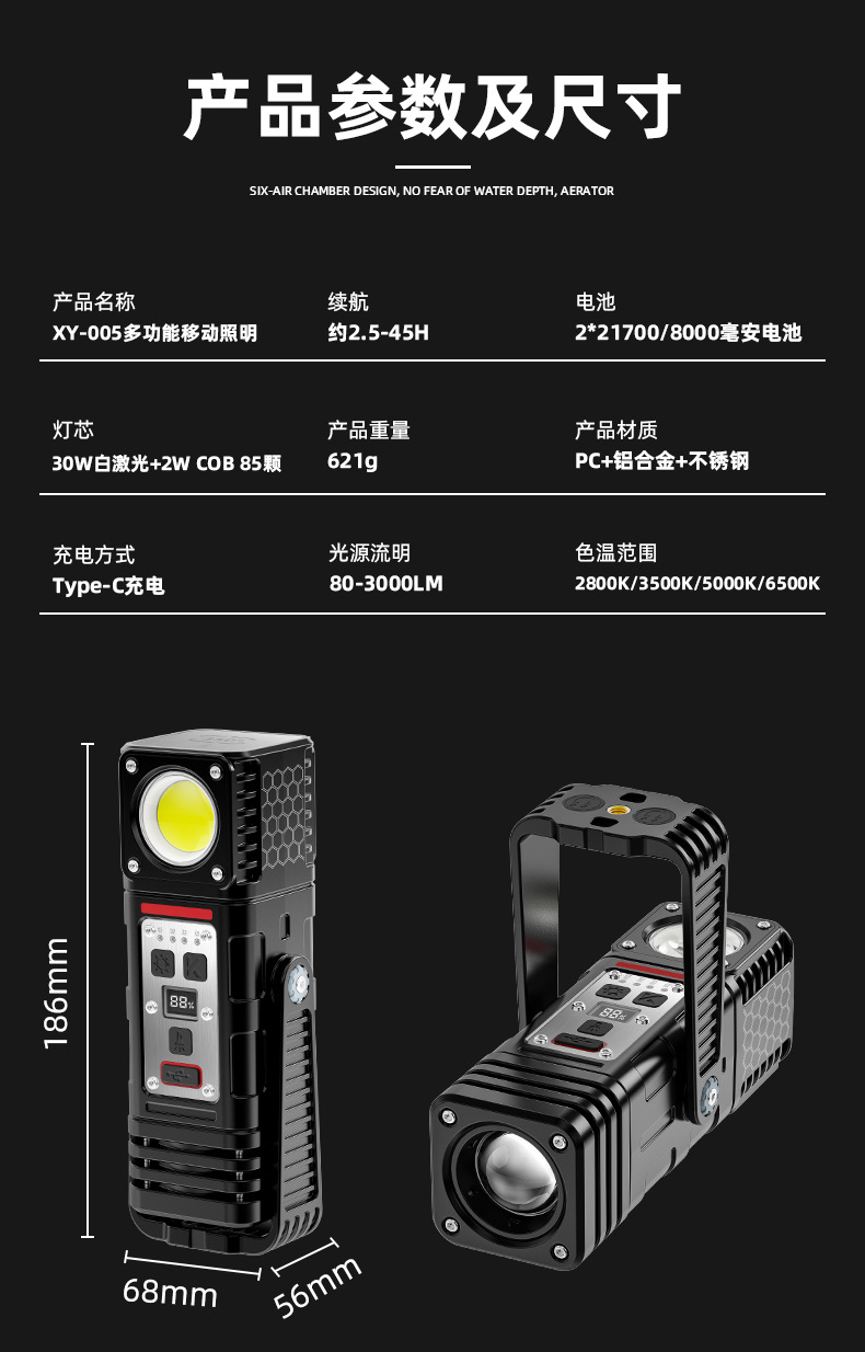 | 顔色 | XY-005多功能移動照明野營燈 |
