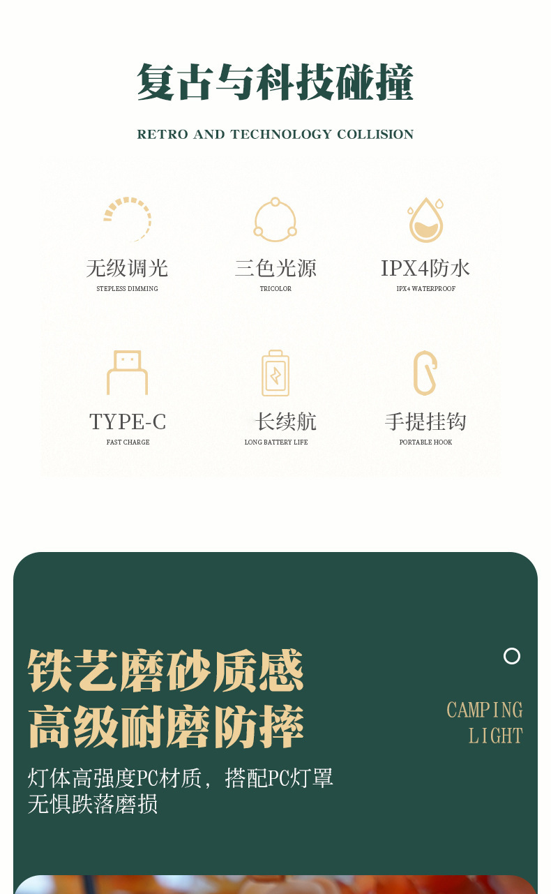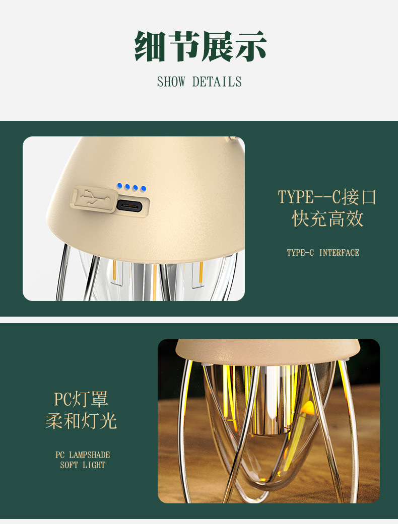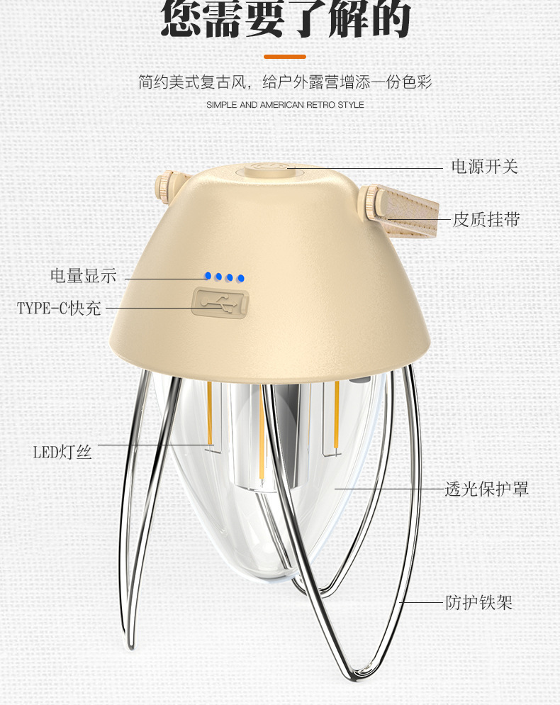 復古led露營燈野營燈usb充電可攜式掛式戶外照明燈多功能營地帳篷燈