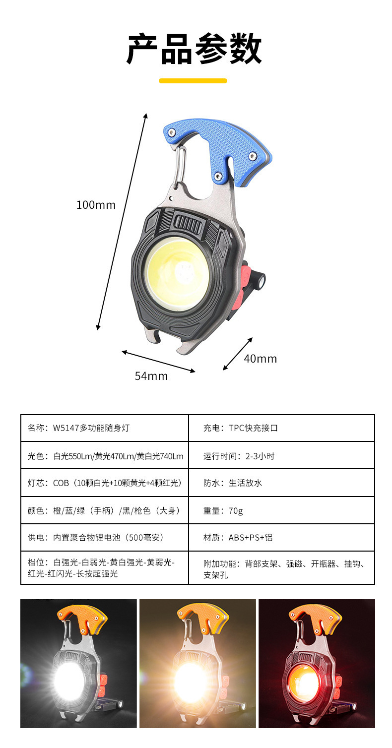 萬能鑰匙釦款工作燈多功能可攜式露營汽修工具 LED強光迷你野營燈