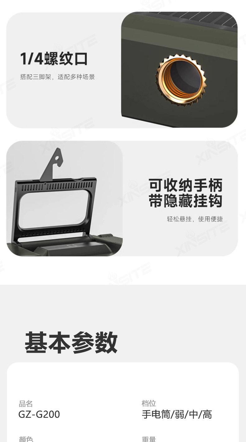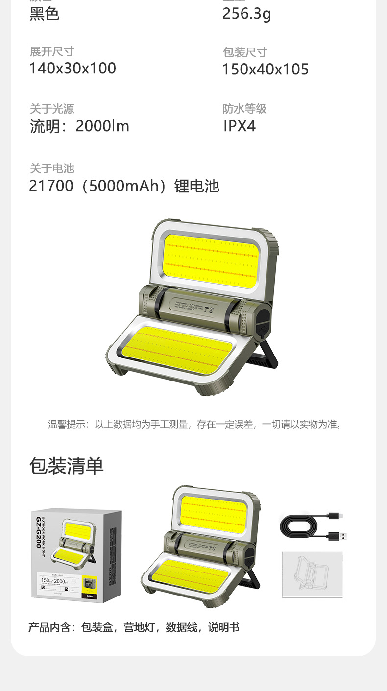 | 顔色 | G200卡其色(太陽能+2000LM)5000mah |