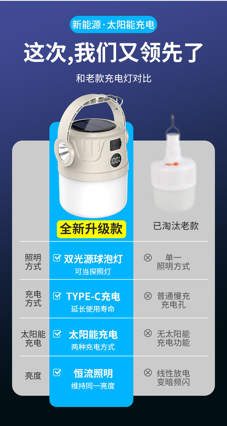 露營燈太陽能戶外可充電超長續航帳篷燈應急燈野營燈充電式照明燈