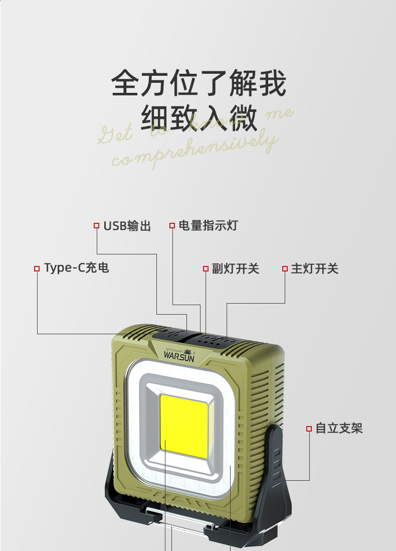 沃爾森G600多功能移動太陽能可充電擺地攤戶外備用強光露營燈