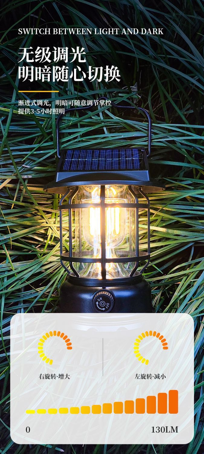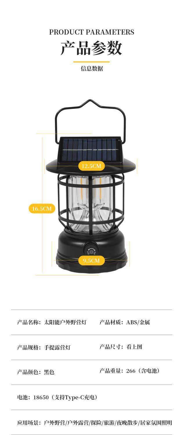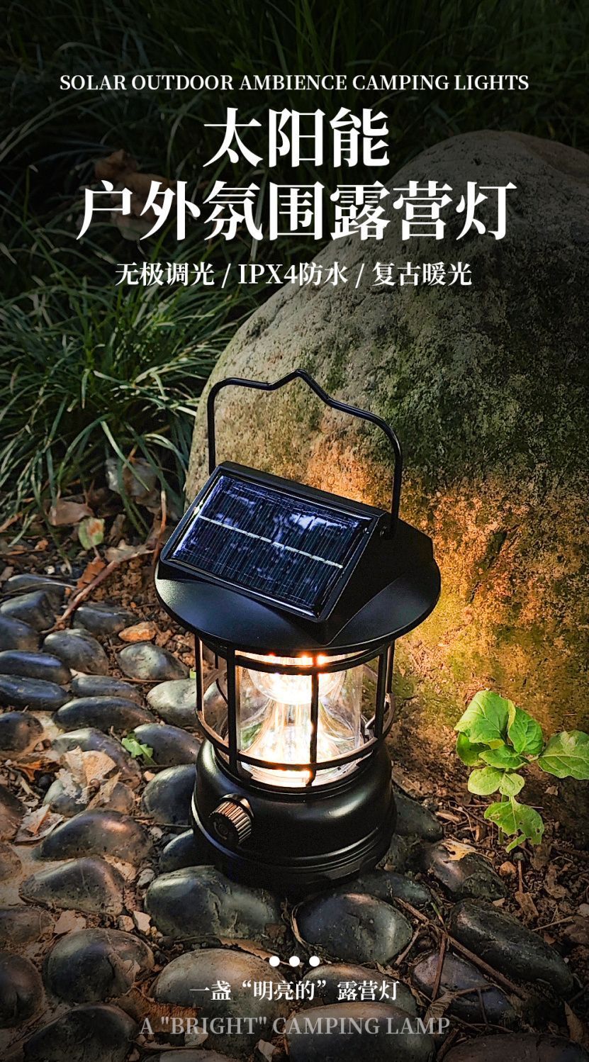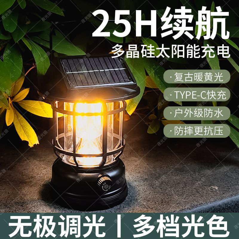 太陽能復古戶外露營鎢絲馬燈營地手提式野營超長續航充電帳篷照明
