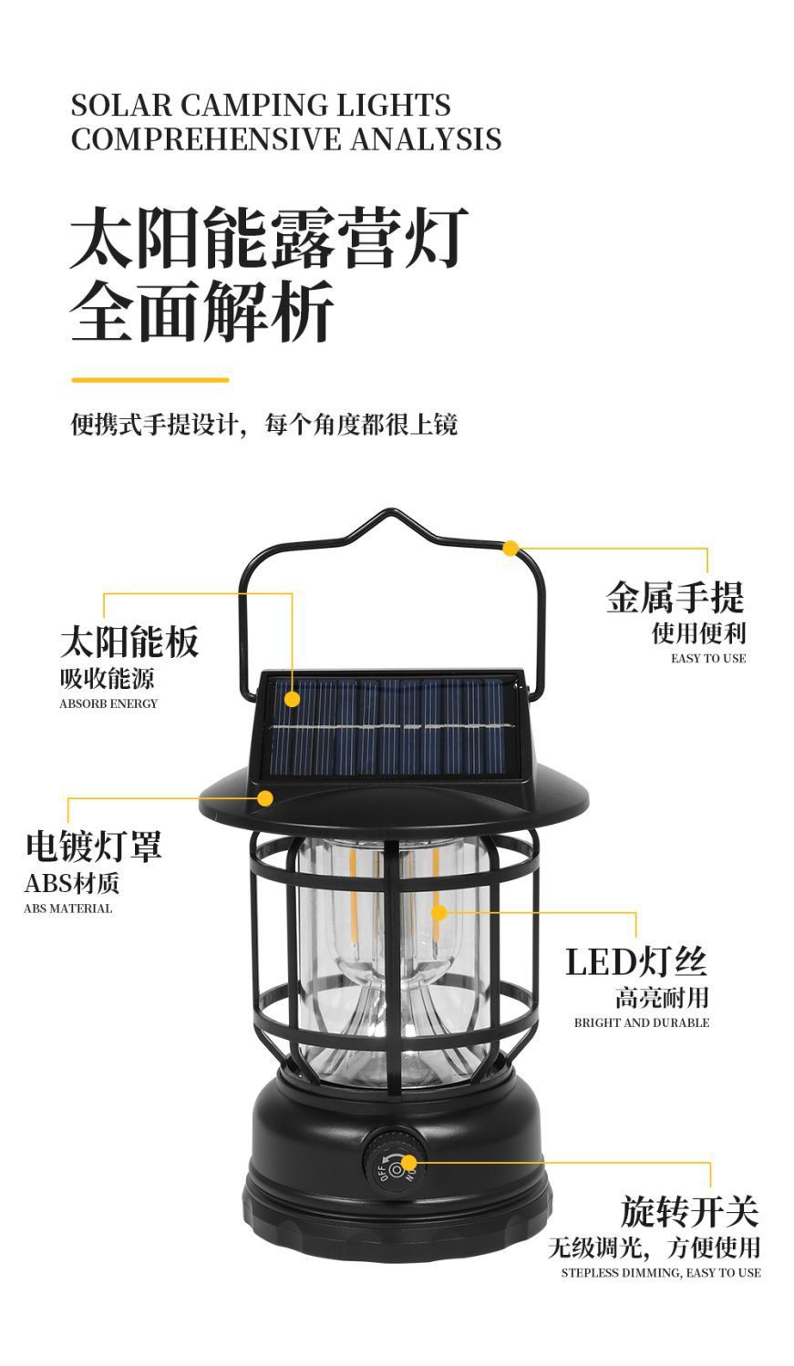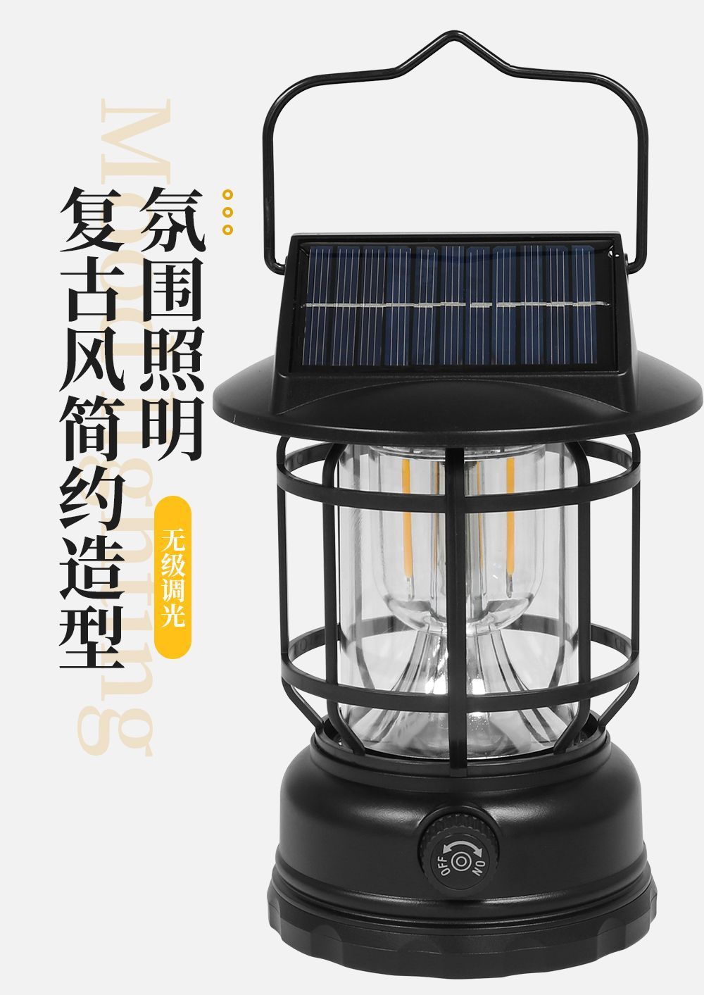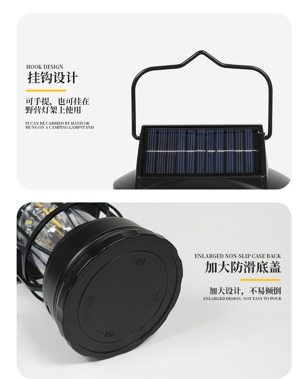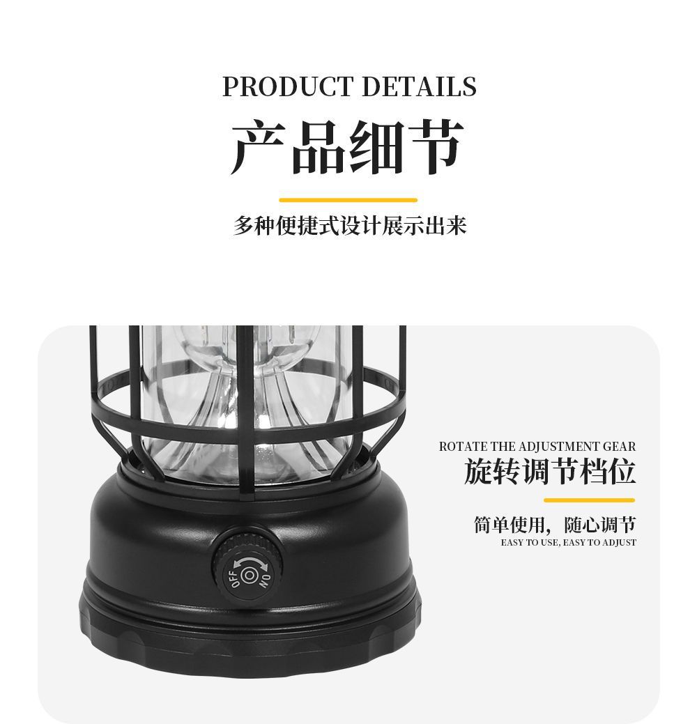 太陽能復古戶外露營鎢絲馬燈營地手提式野營超長續航充電帳篷照明