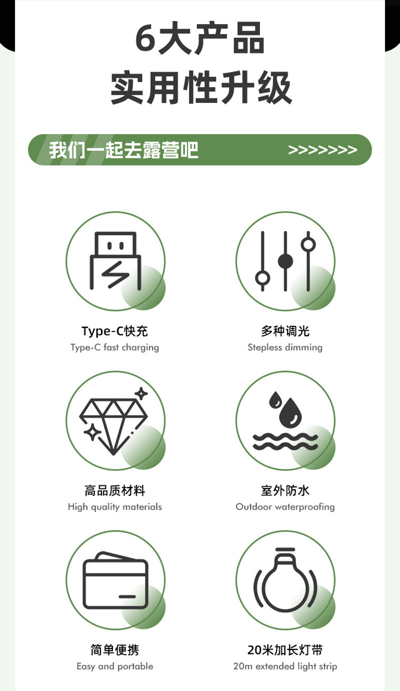 露營卷尺燈野營氛圍燈防水 可攜式收納串燈營地照明帳篷燈