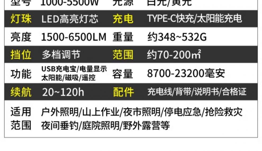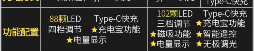 | 顔色 | 頂配,太陽能5500W款120H續航磁吸/電顯/遙控/USB |