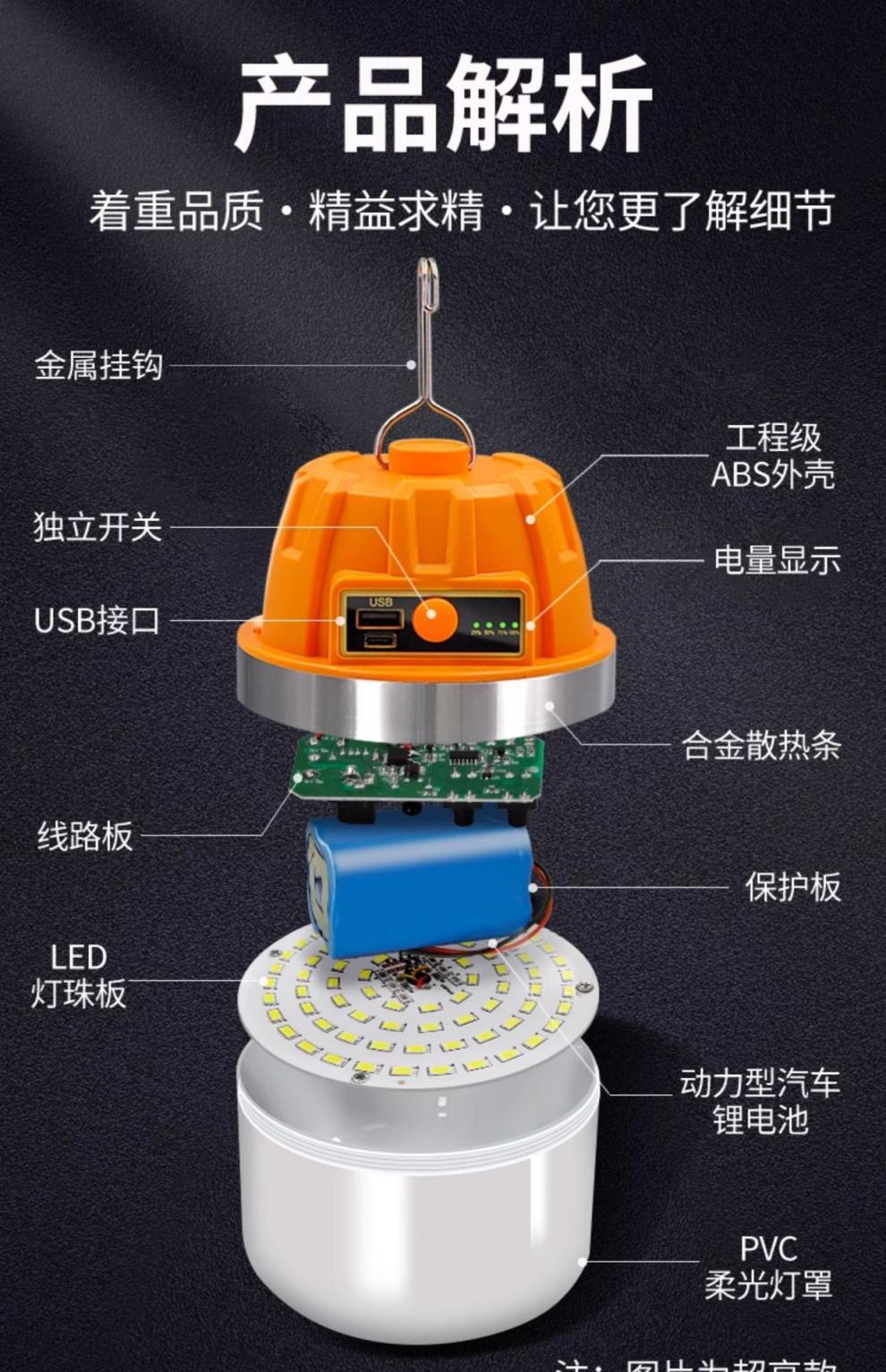 充電照明燈戶外露營led超長續航夜市擺攤家用應急野營地帳篷掛燈