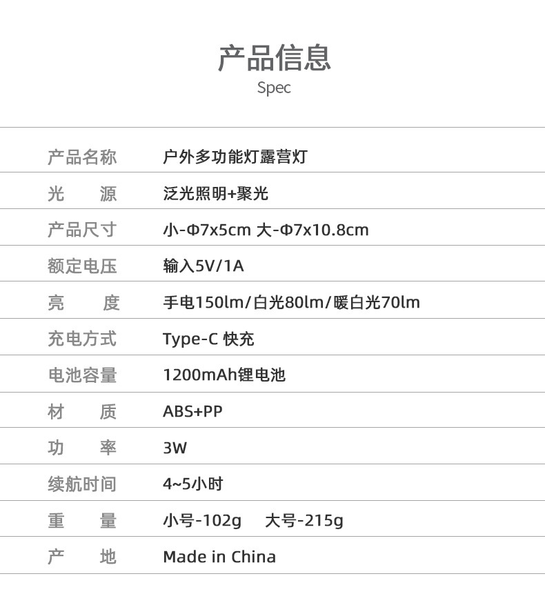 戶外露營強光超長續航充電營地小夜燈帳篷掛燈手電兩用野營燈