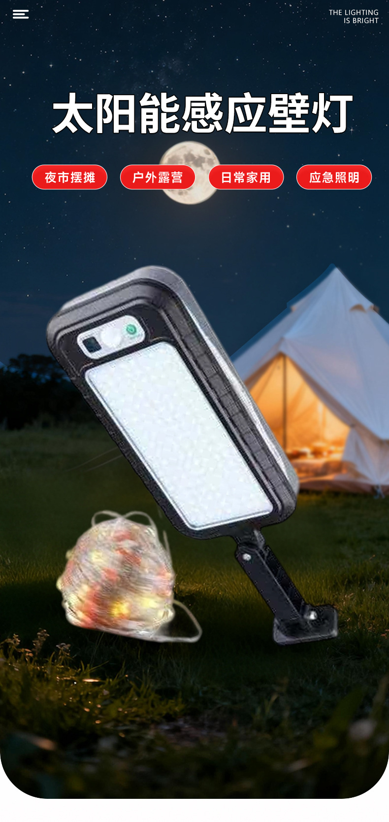 太陽能壁燈戶外智能光控人體感應露營燈180度旋轉折疊可攜式外拍燈