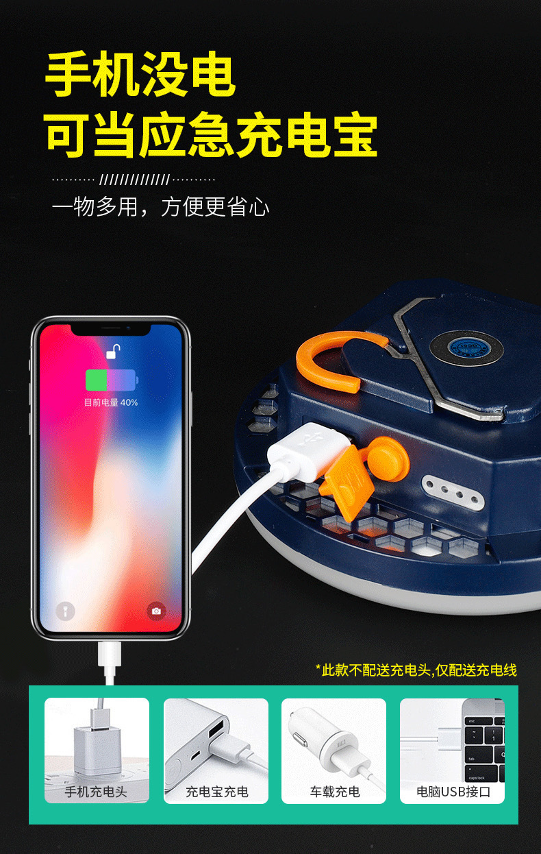 格邦戶外露營燈飛碟主燈充電超亮應急天幕照明燈營地燈續航帳篷燈