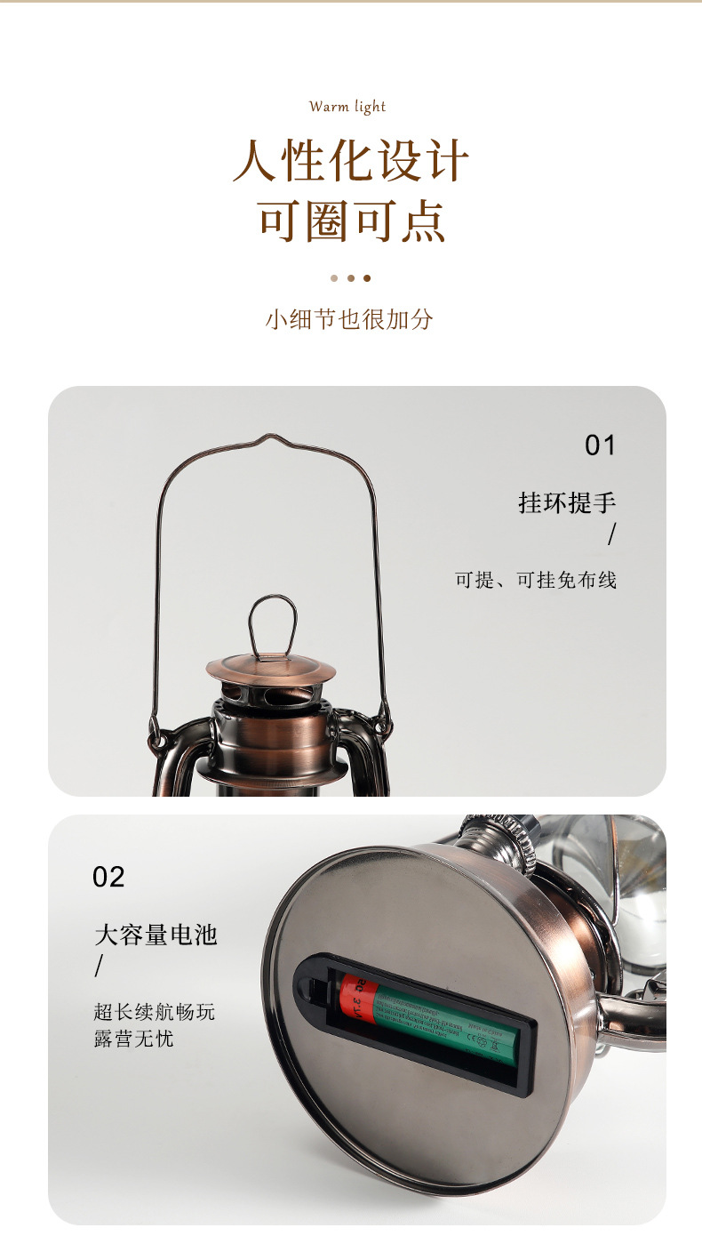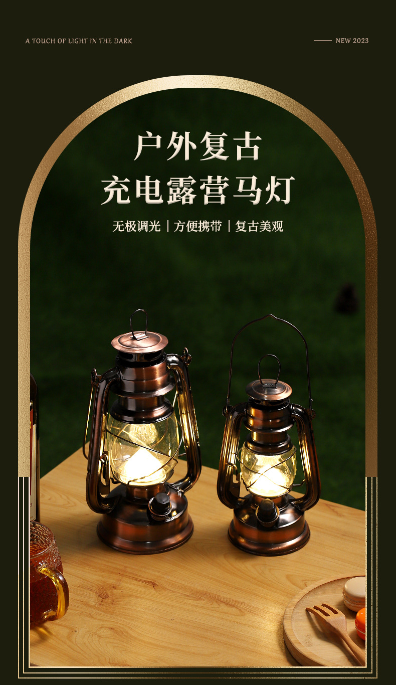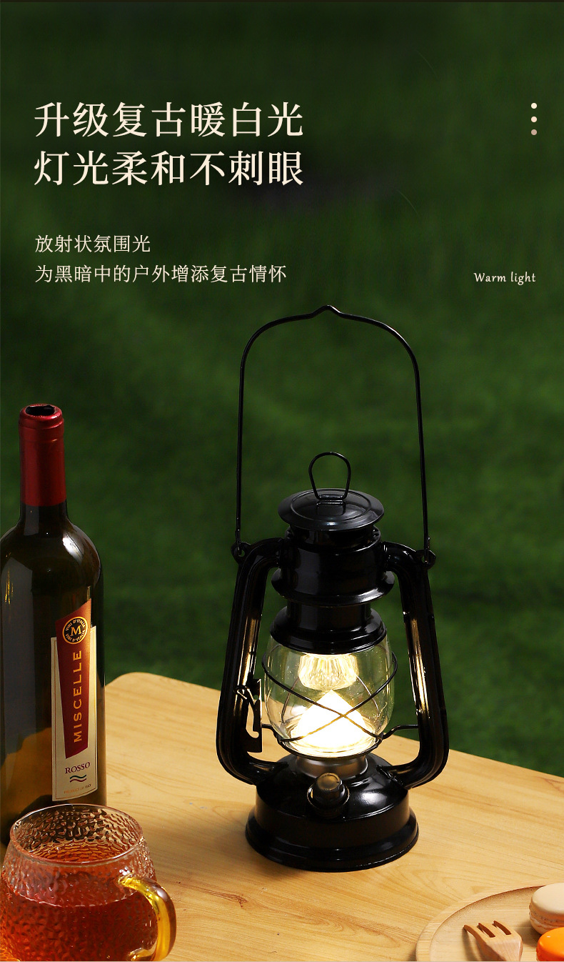戶外帳篷燈復古充電馬燈煤油燈露營燈超長續航手提應急燈擺件