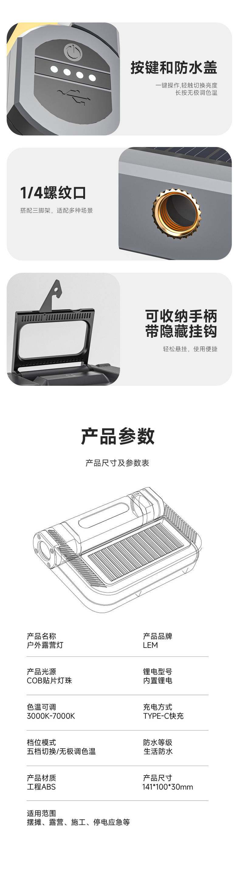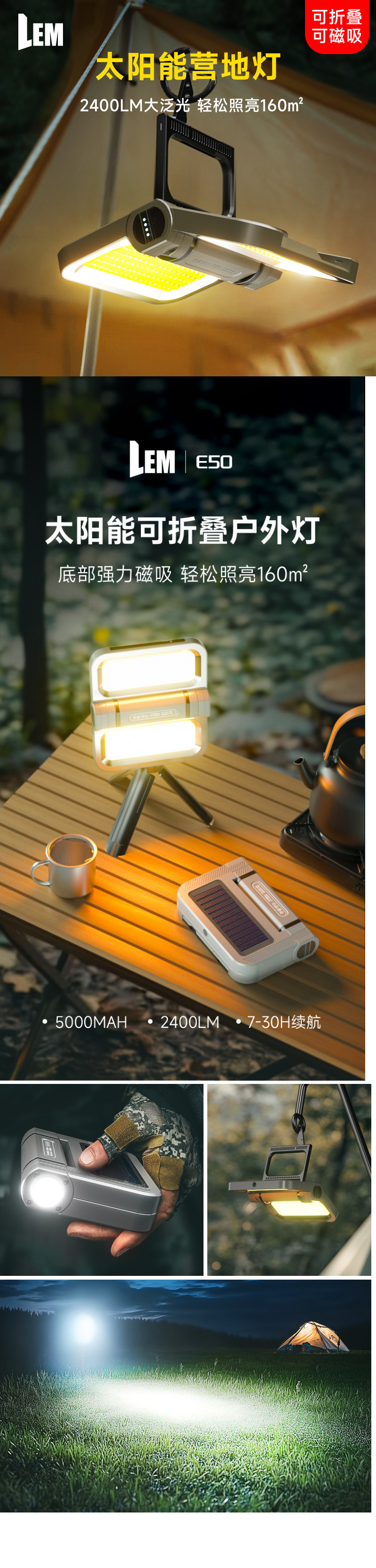 LEM戶外露營燈家用應急燈工地充電照明燈地攤強磁吸