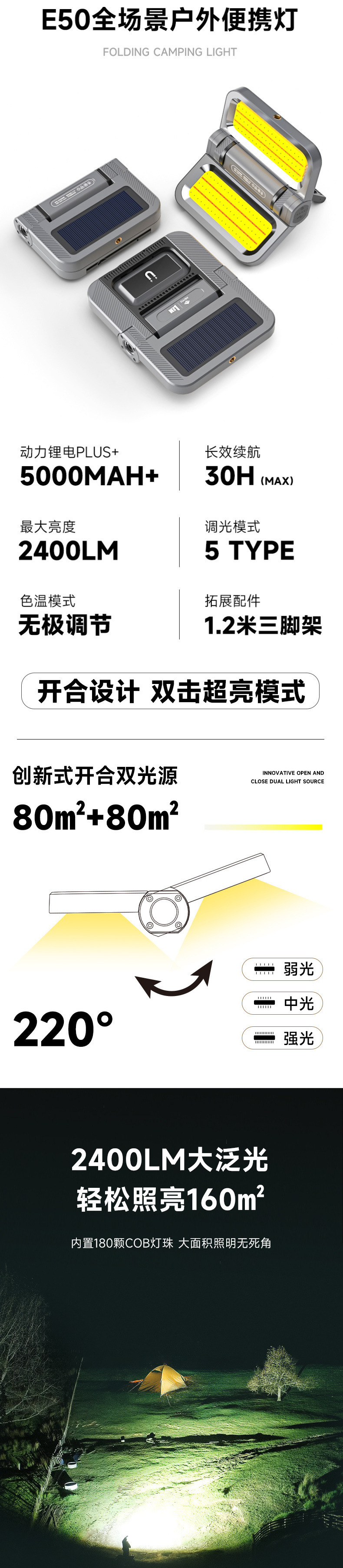 | 顔色 | E50加強版+收納包+三腳支架-強磁吸附/太陽能充電/無極調光 |