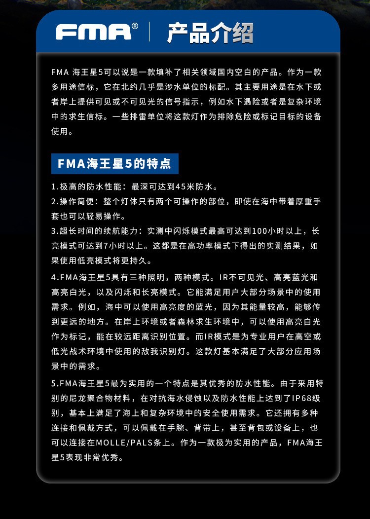 FMA 海王星5潛水標記燈敵我識別超強防水IPX68救援燈 TB1482