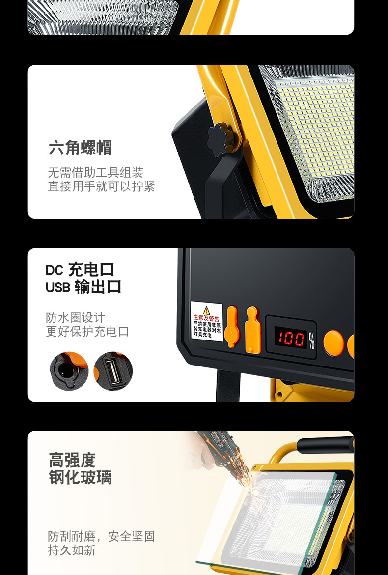 充電投光燈家用應急照明停電工地戶外籃球擺攤手提超亮露營燈