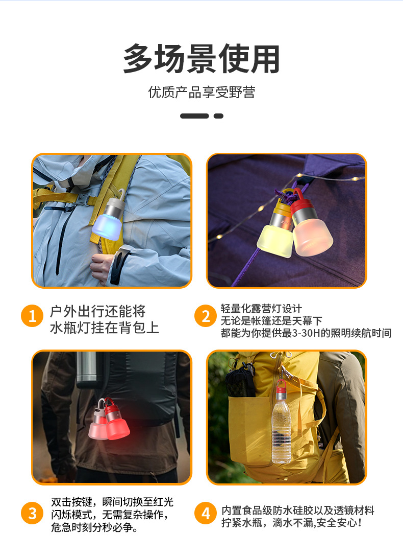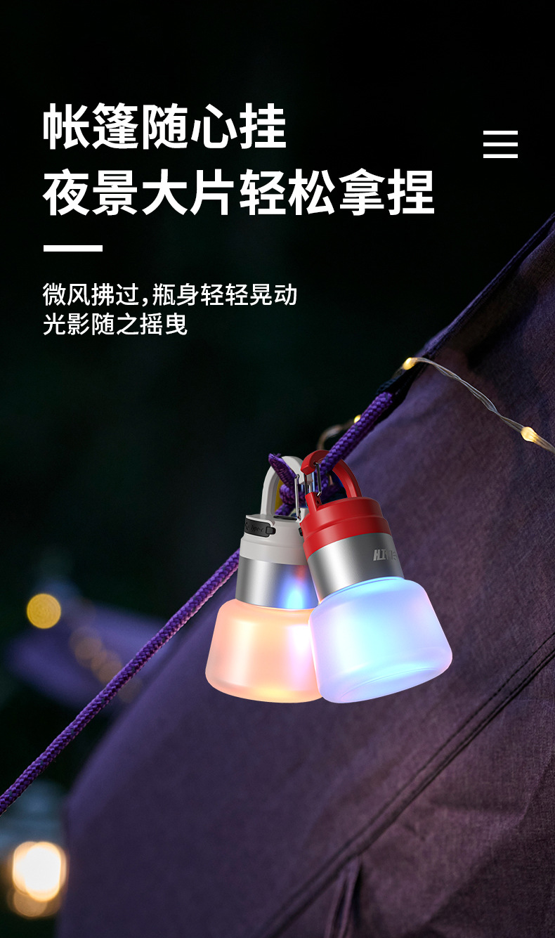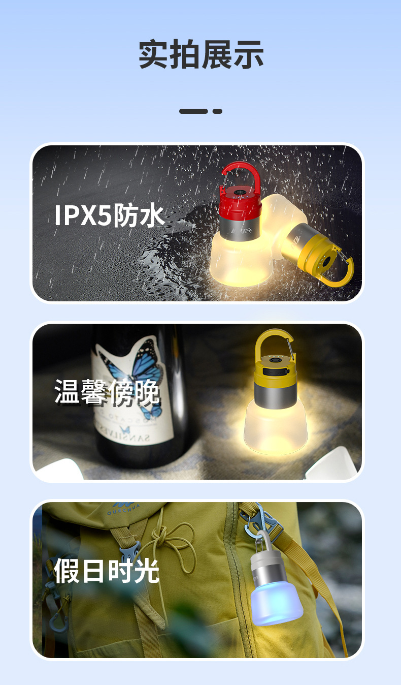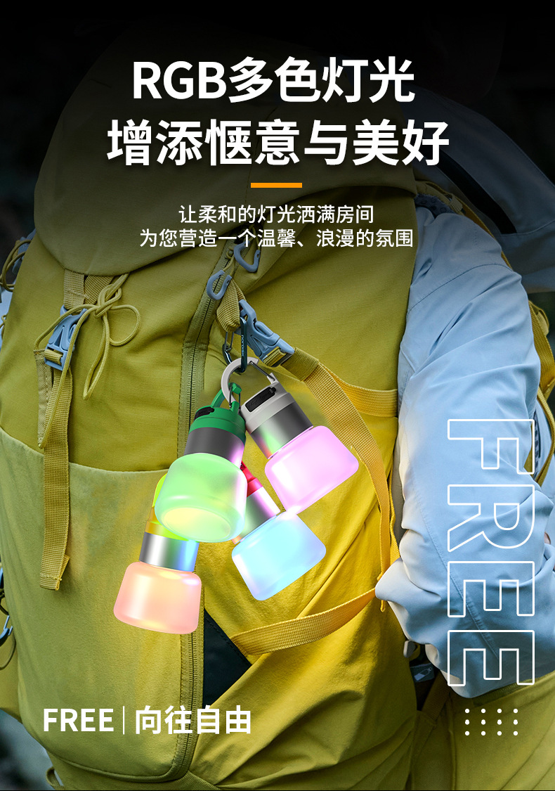 新款戶外露營燈多光源可攜式鑰匙釦掛鉤迷你小手電筒氛圍野營燈