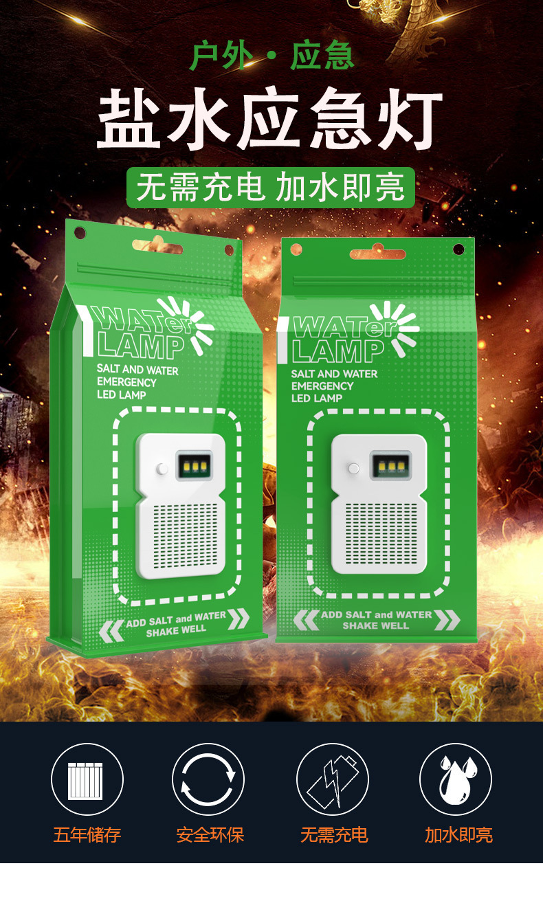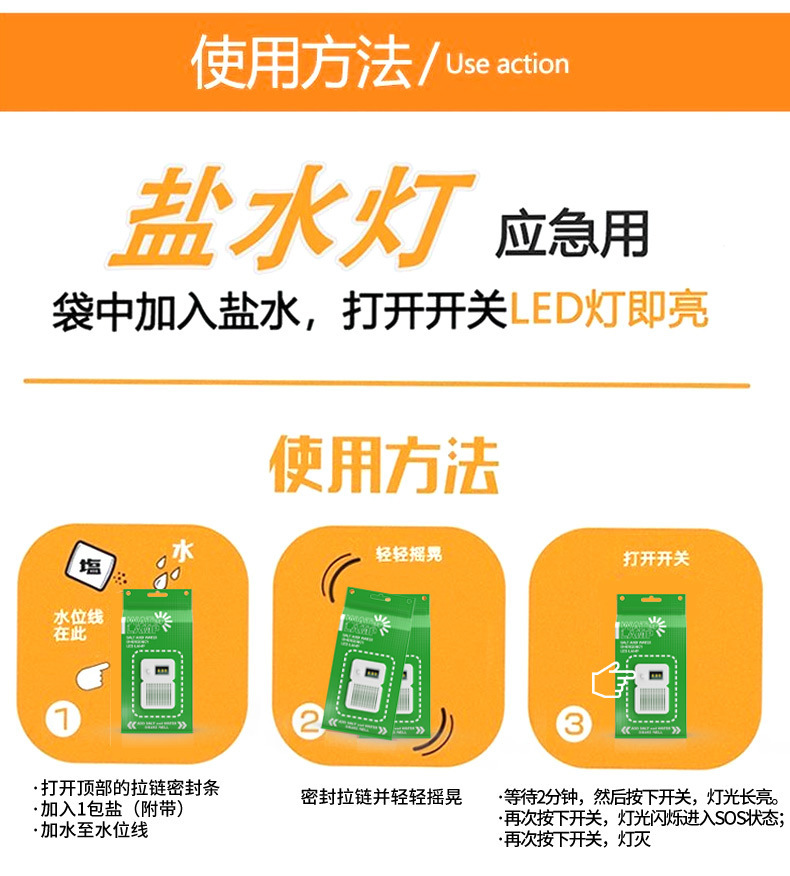 鹽水燈露營LED免充電鹽水袋燈野營戶外照明警示燈可調光強光模式