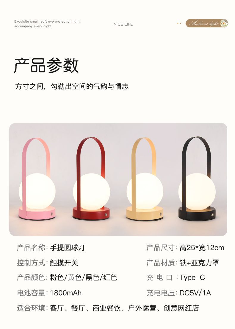 網紅手提台燈可攜式充電戶外氛圍露營小夜燈居家用臥室床頭燈