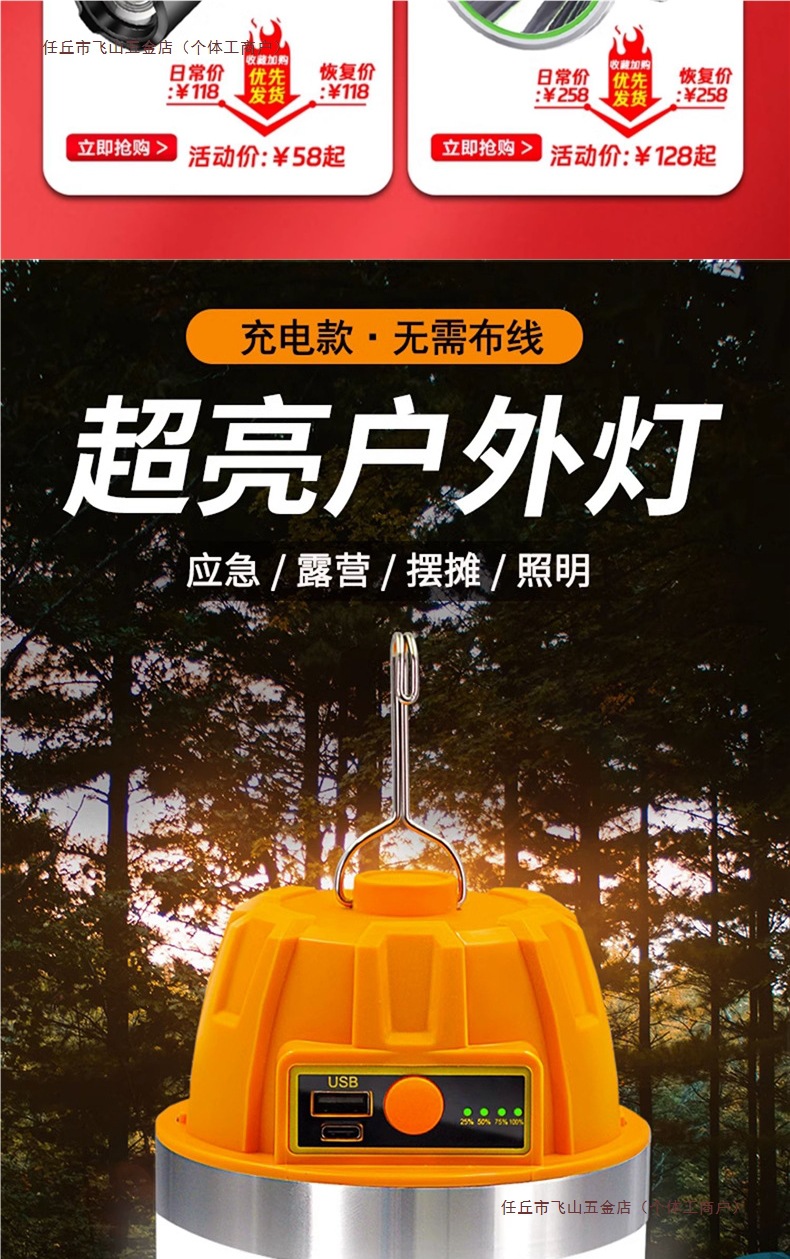 充電照明燈戶外露營超長續航停電備用家用應急led野營地帳篷掛燈