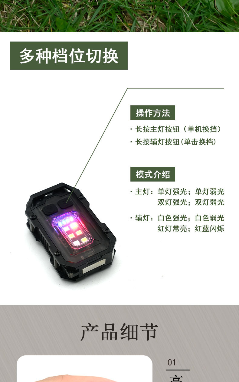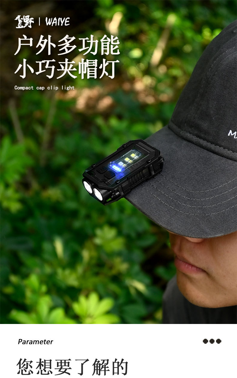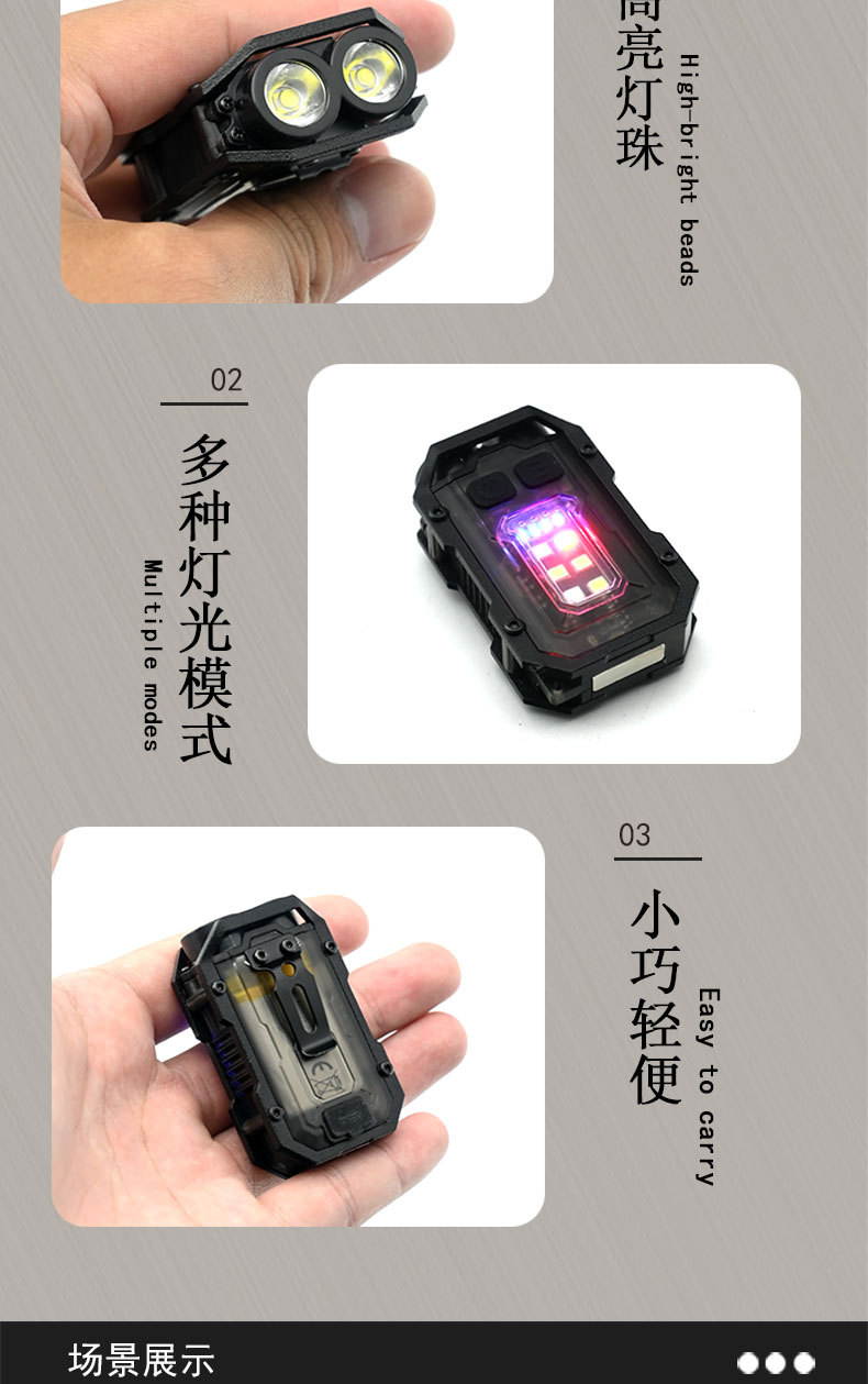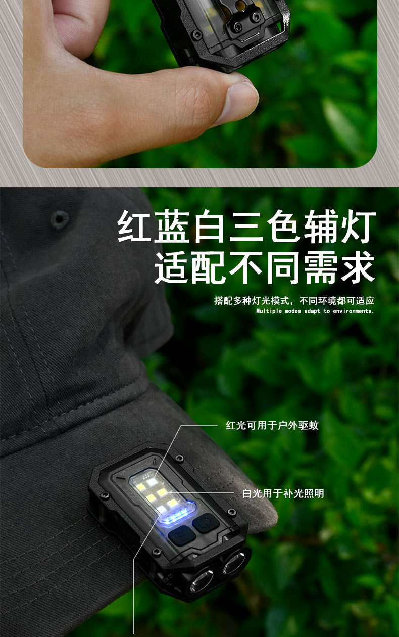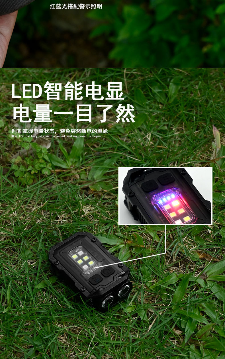 戶外可攜式迷你鑰匙釦燈夾帽燈多功能磁吸防丟Type-C快充工具燈