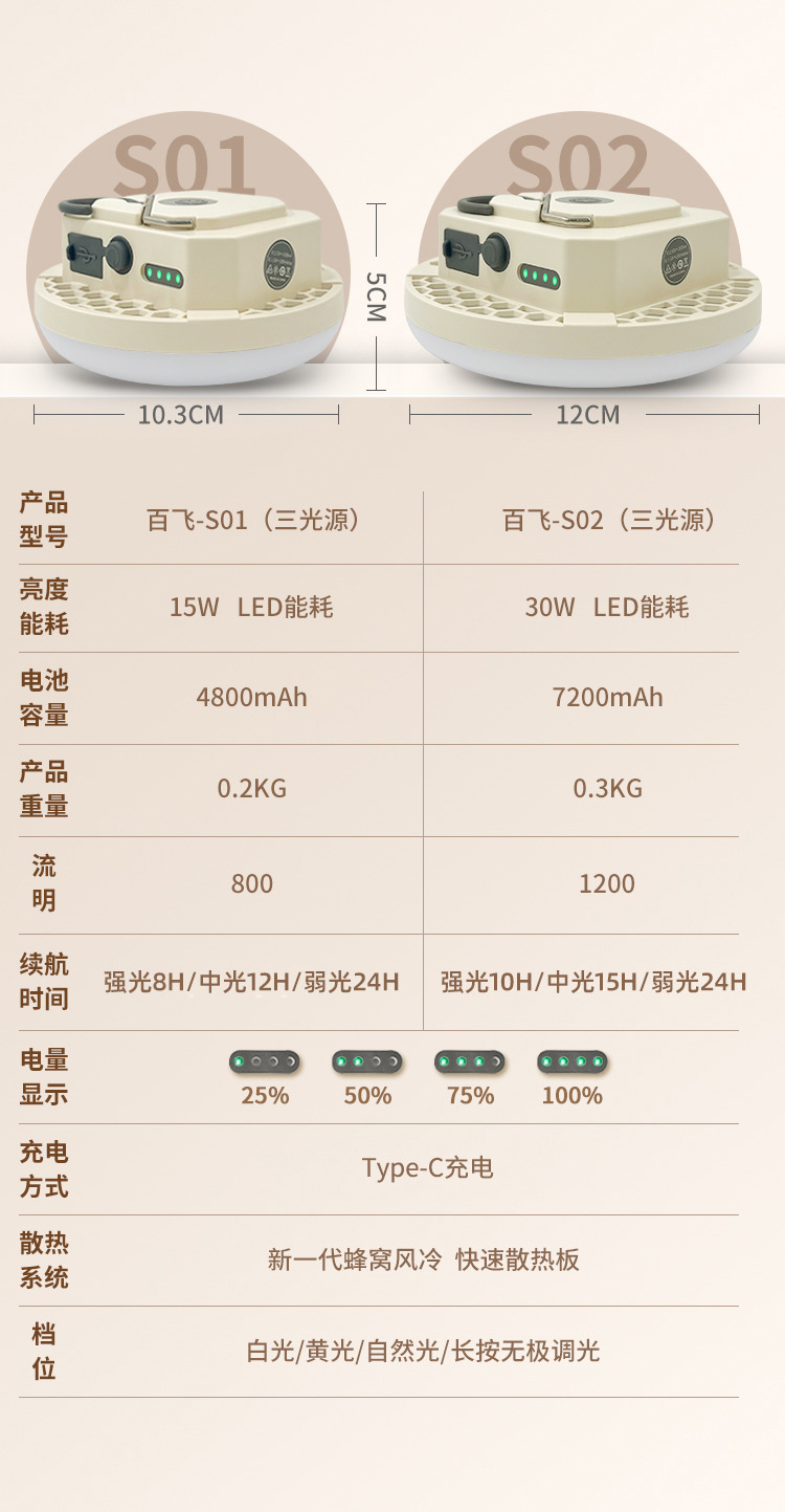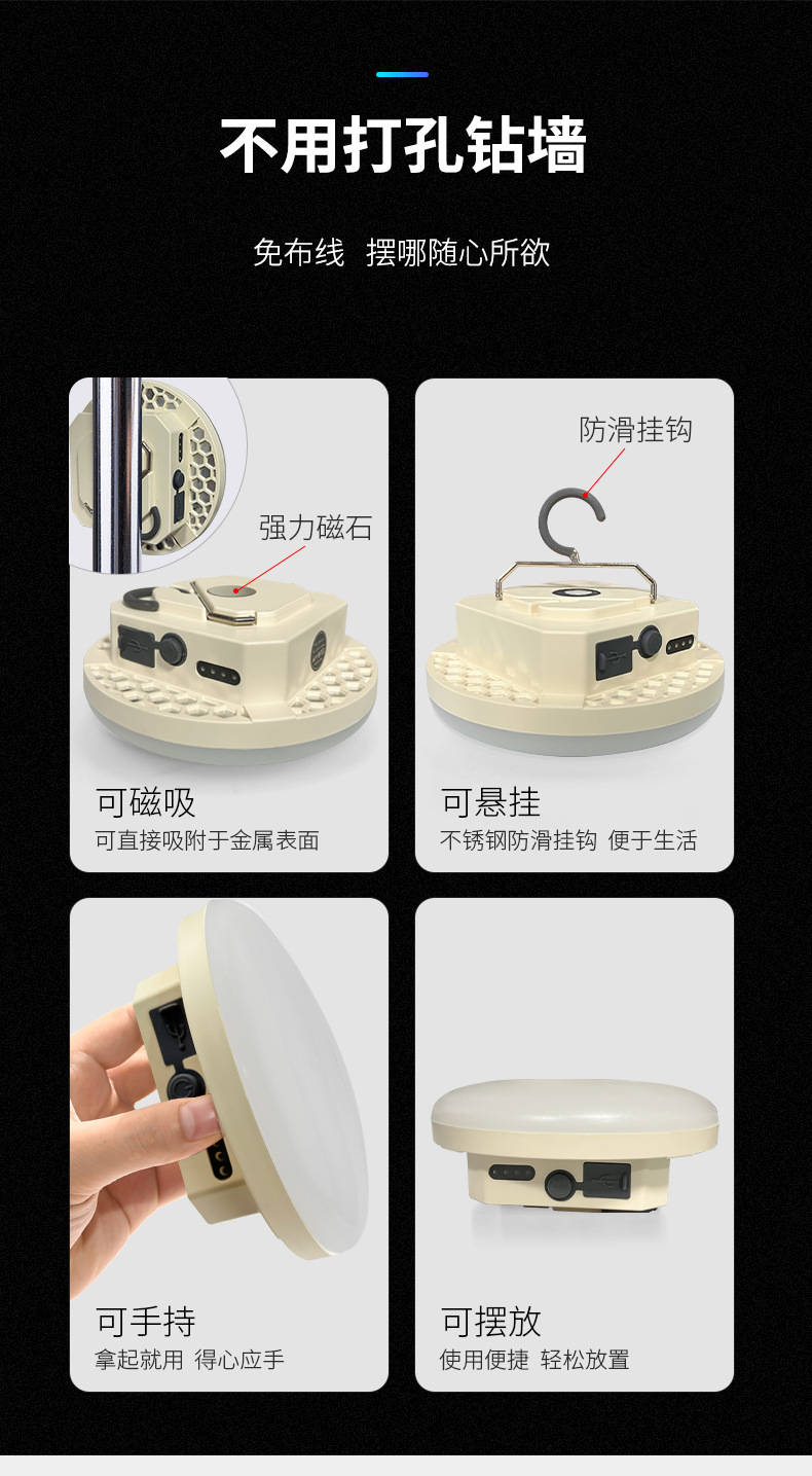 百飛S02多功能LED戶外照明燈露營燈可充電磁吸擺攤防水應急營地燈